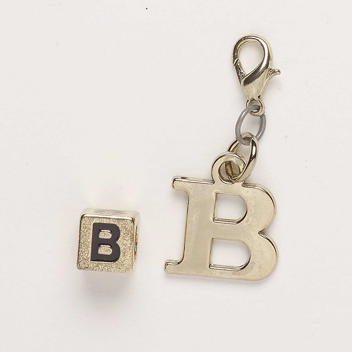 This package includes 1 cube bead and 1 letter charm with lobster claw clasp. This item may have a tarnished finish but can be cleaned with tarnish-removing cleaners.
