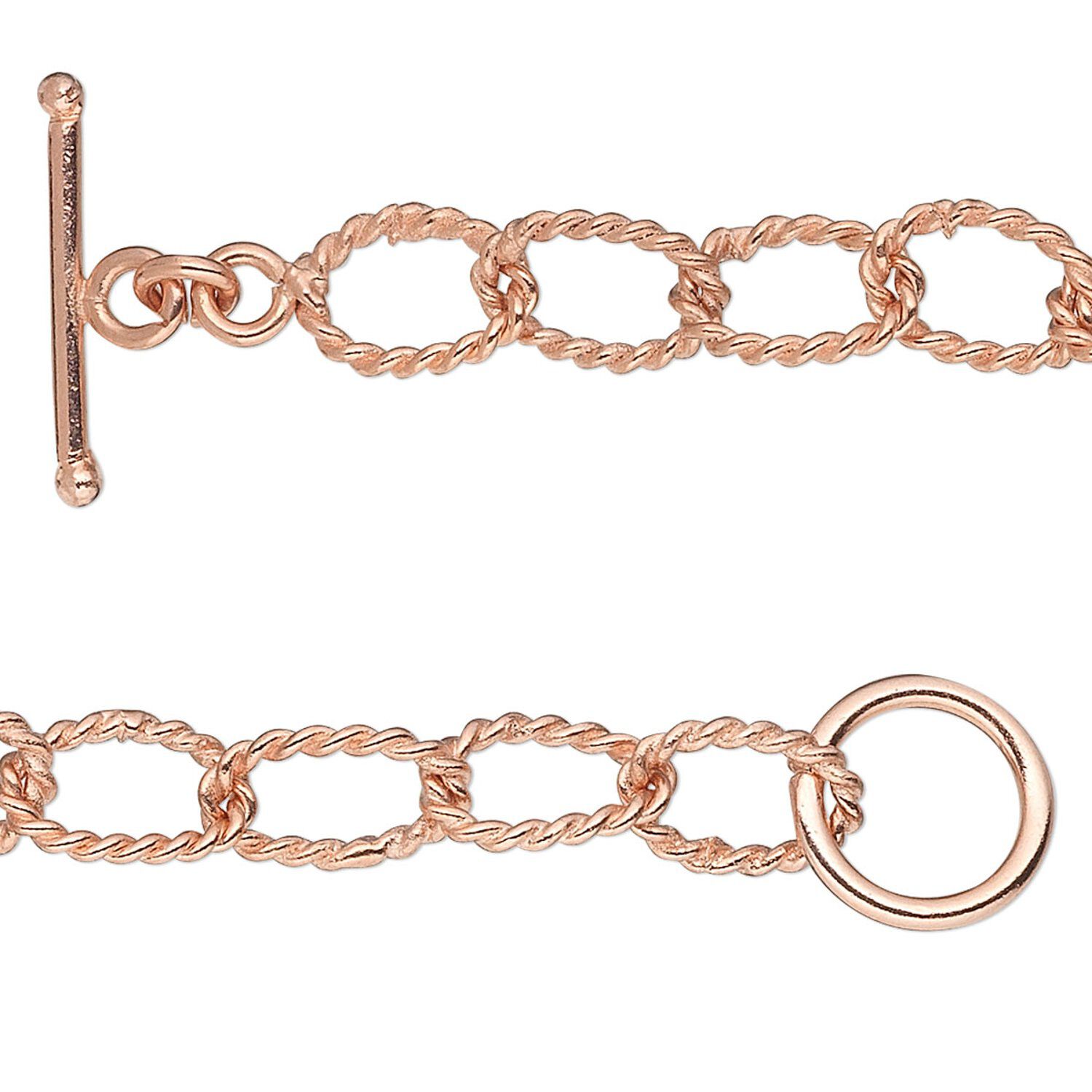 Chain 1pkg1 copper-plated cable, 7mm twisted oval / toggle clasp, copper 24 inch
