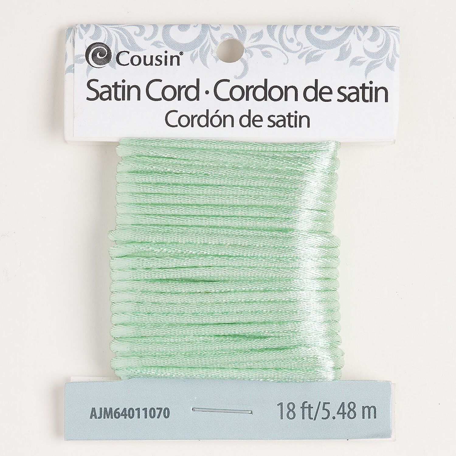 Cord, satin, mint green, 1mm round. Sold per 18-foot section.