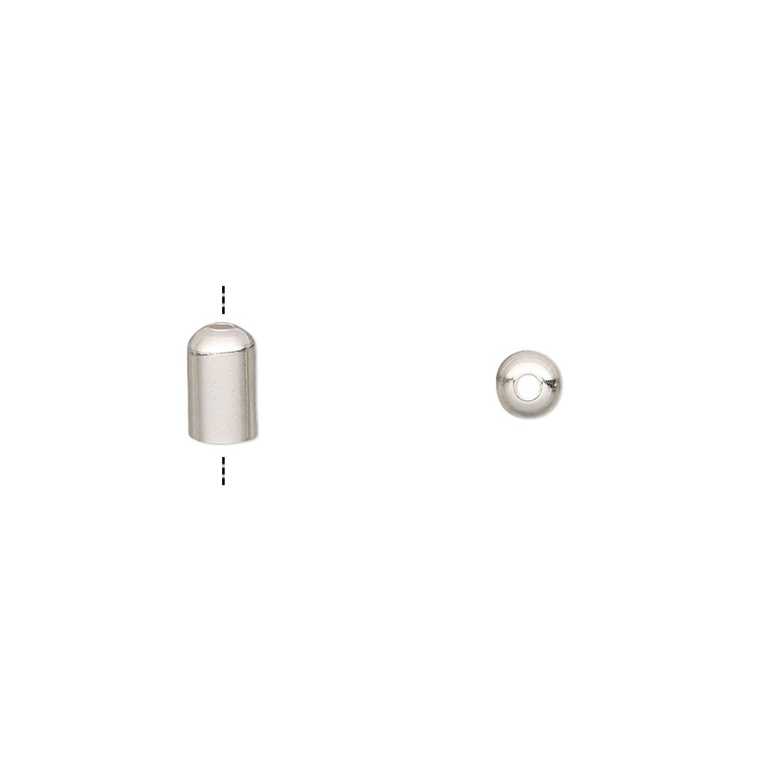 Cord end, silver-plated brass, 6.5x4mm with 3mm inside diameter. Sold per pkg of 100.