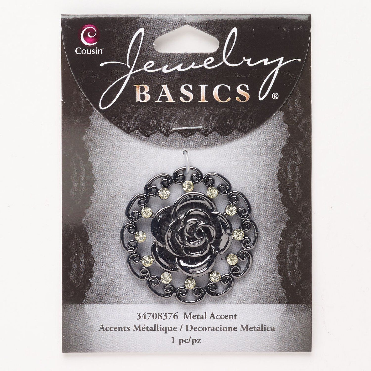Focal, "pewter" (zinc-based alloy) and glass, pkg/1, gunmetal finish and pale yellow, 39mm fancy round rose.