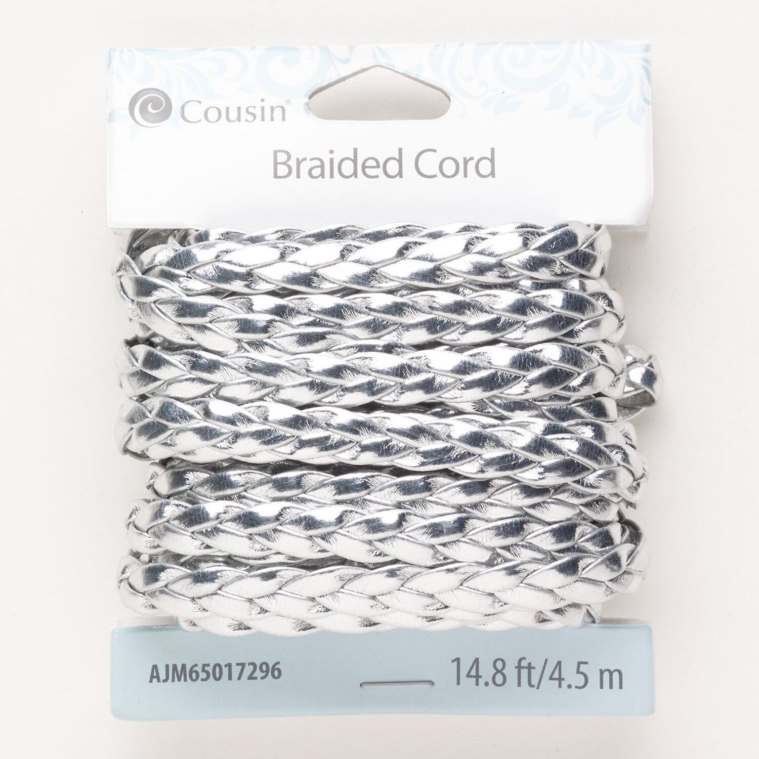 Cord, plastic, pkg/4.5m, silver, 7mm braided flat.