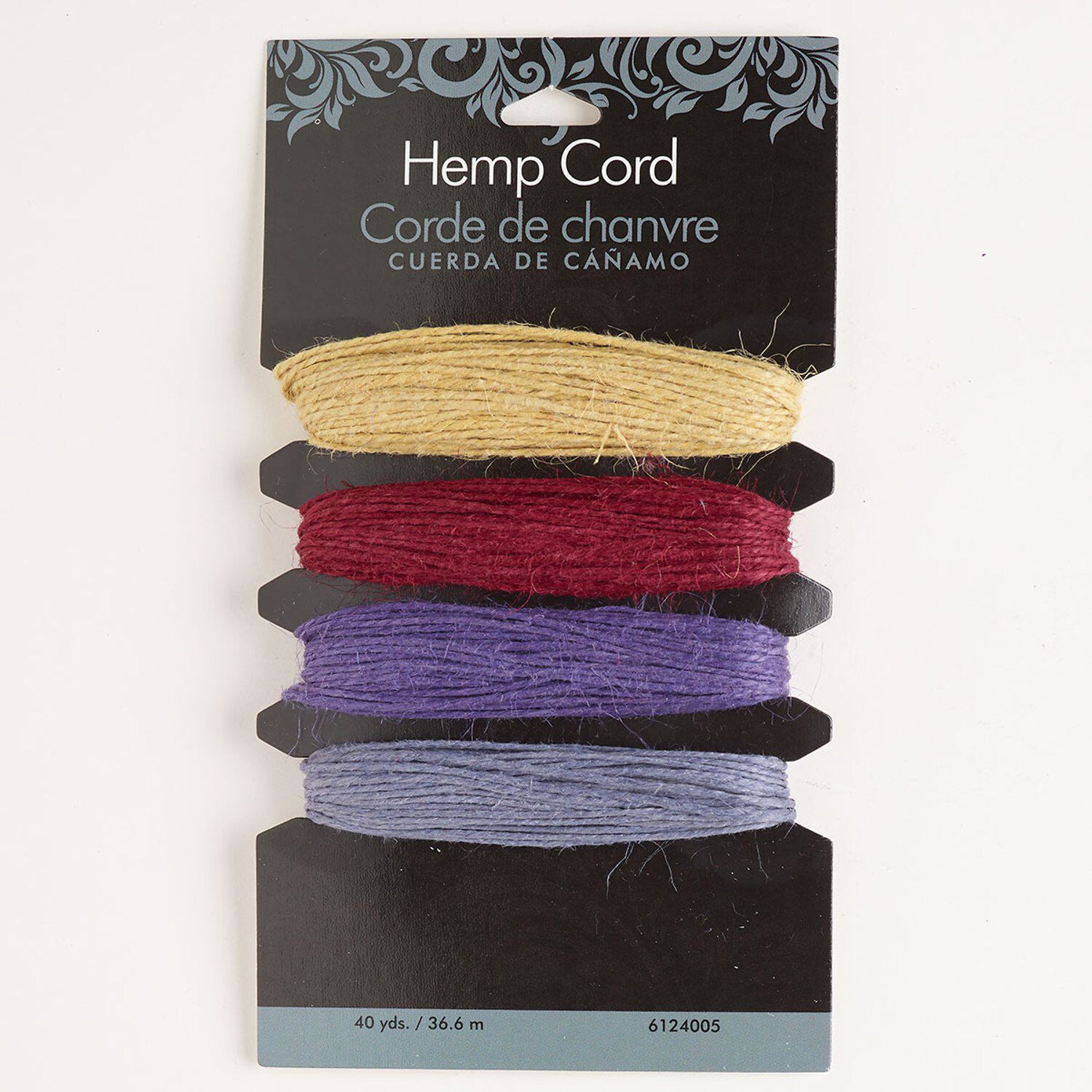 Cord assortment, hemp, mixed colors, 1mm round. Sold per pkg of 40 yards.