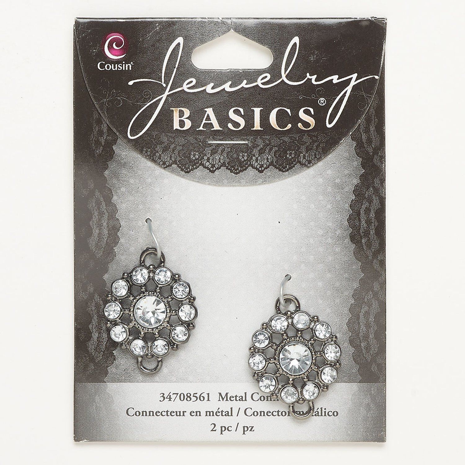 Link, "pewter" (zinc-based alloy) and acrylic, pkg/2, gunmetal finish and clear, 21mm fancy round.