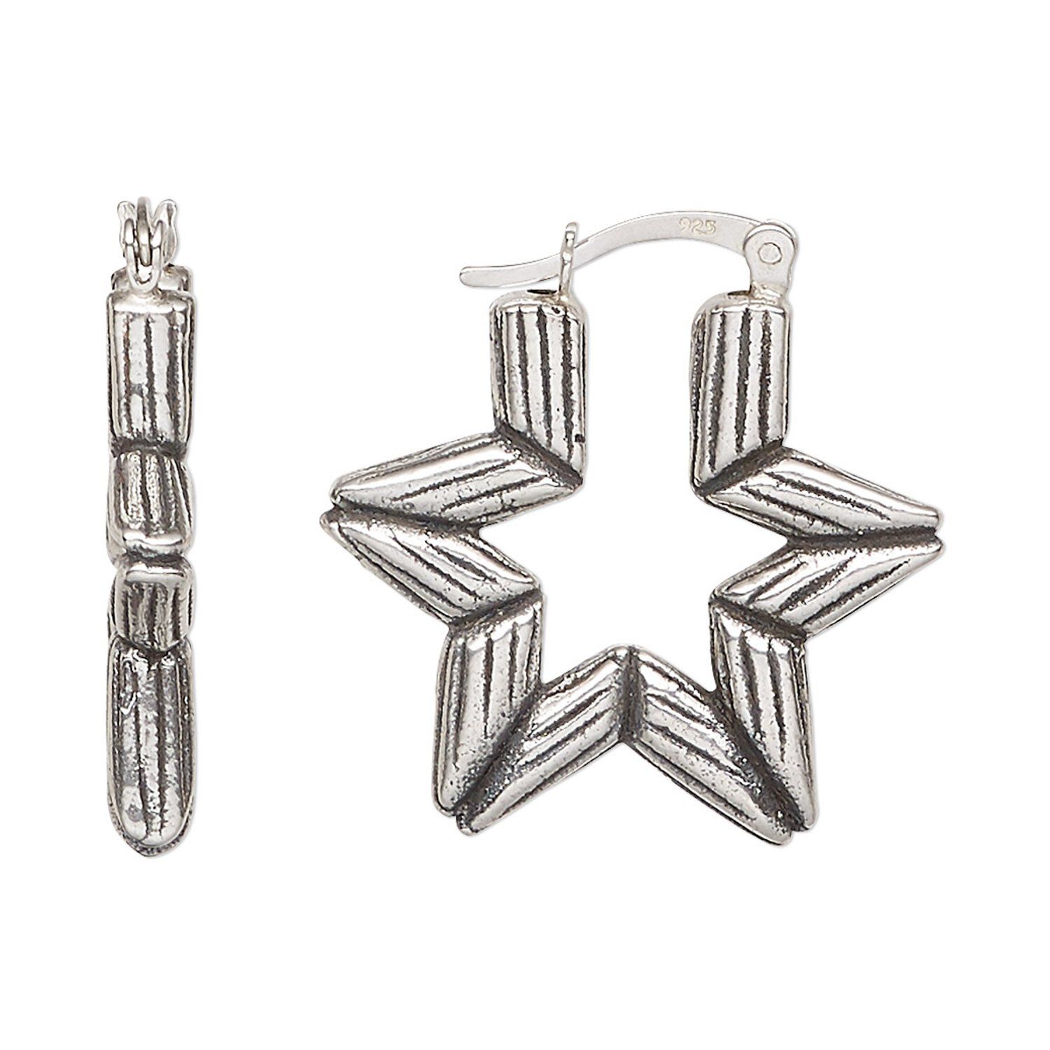 Earring, antiqued sterling silver, electroformed, 26.5mm star hoop with latch-back closure. Sold per pair.