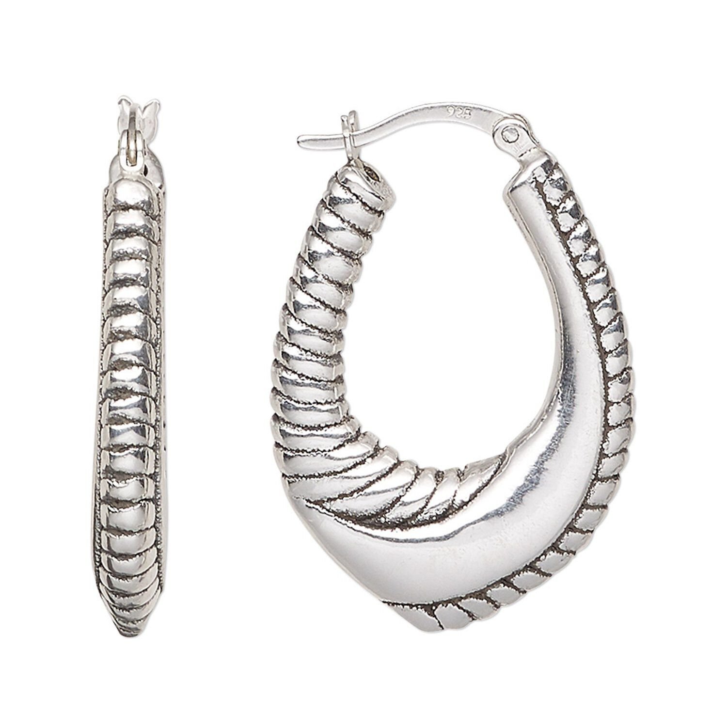 Earring, antiqued sterling silver, electroformed, 32mm wrapped oval hoop with latch-back closure. Sold per pair.