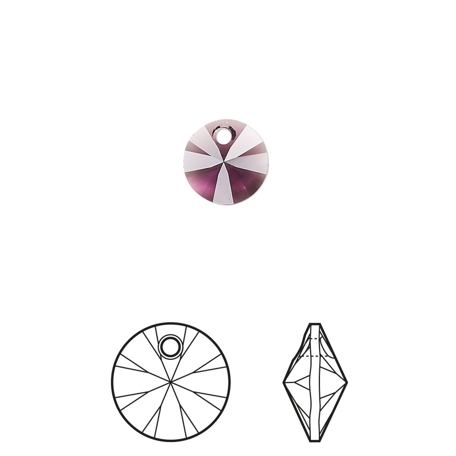 Drop 144pk amethyst, Swarovski® 8mm pendant mini disk 6428