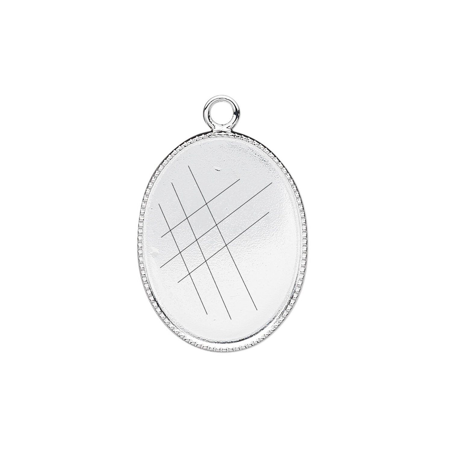 Drop, silver-plated brass, 21x16mm oval with beaded edge and 20x15mm oval bezel cup setting. Sold per pkg of 6.
