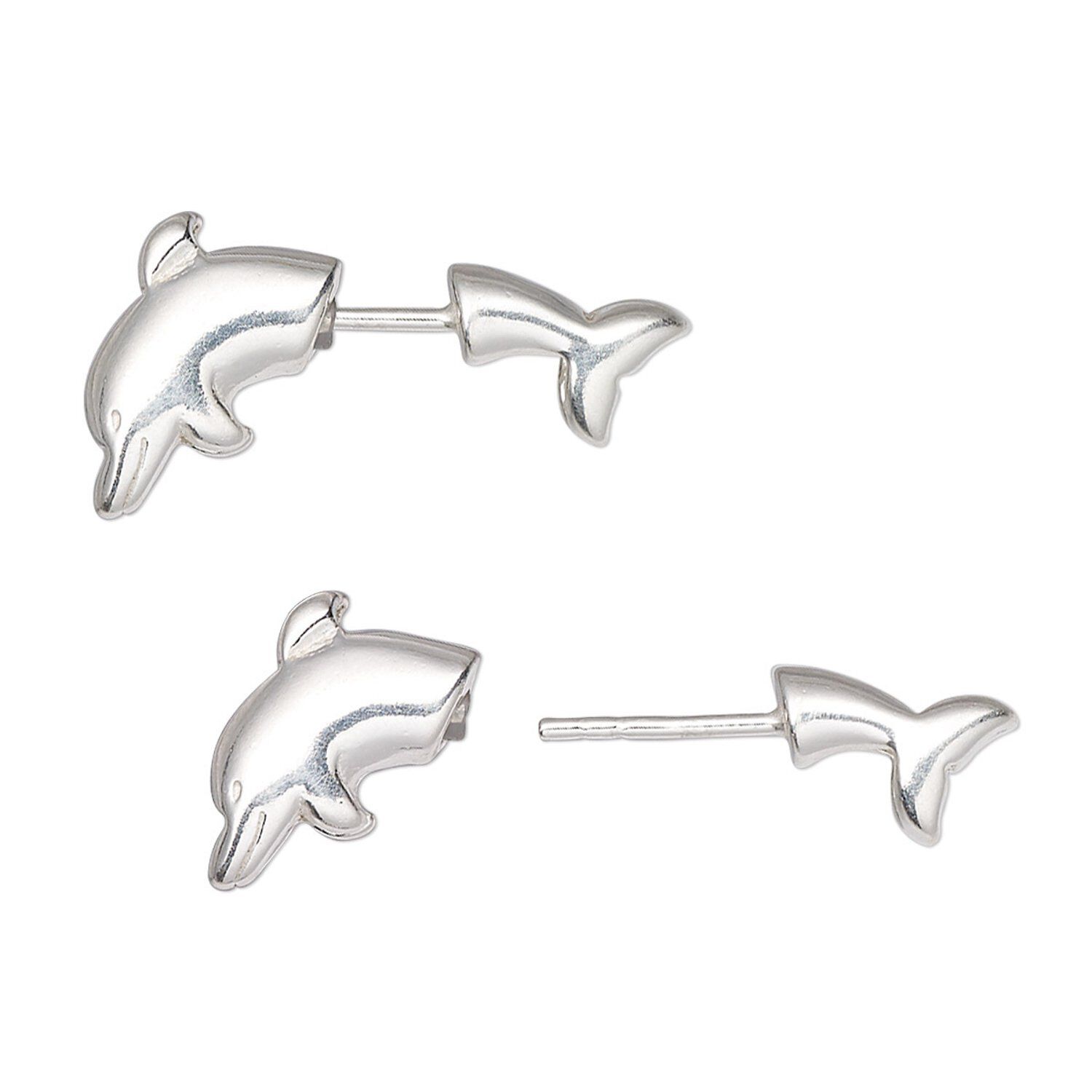The backs of stud earrings aren't just for utility anymore with front and back earring styles. With the head and tail of a dolphin split to hug the earlobe, it will look as if tiny sterling silver dolphins are leaping through your ears.