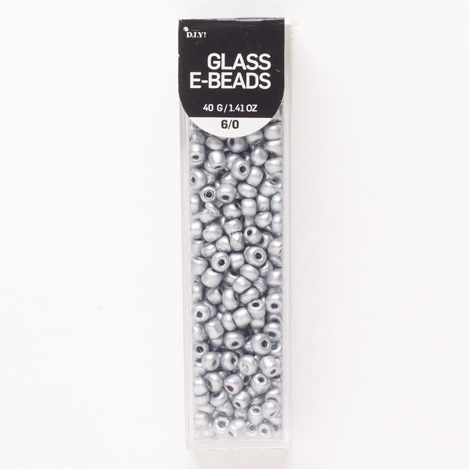 Seed bead, glass, pkg/40g, opaque silver, #6 round.