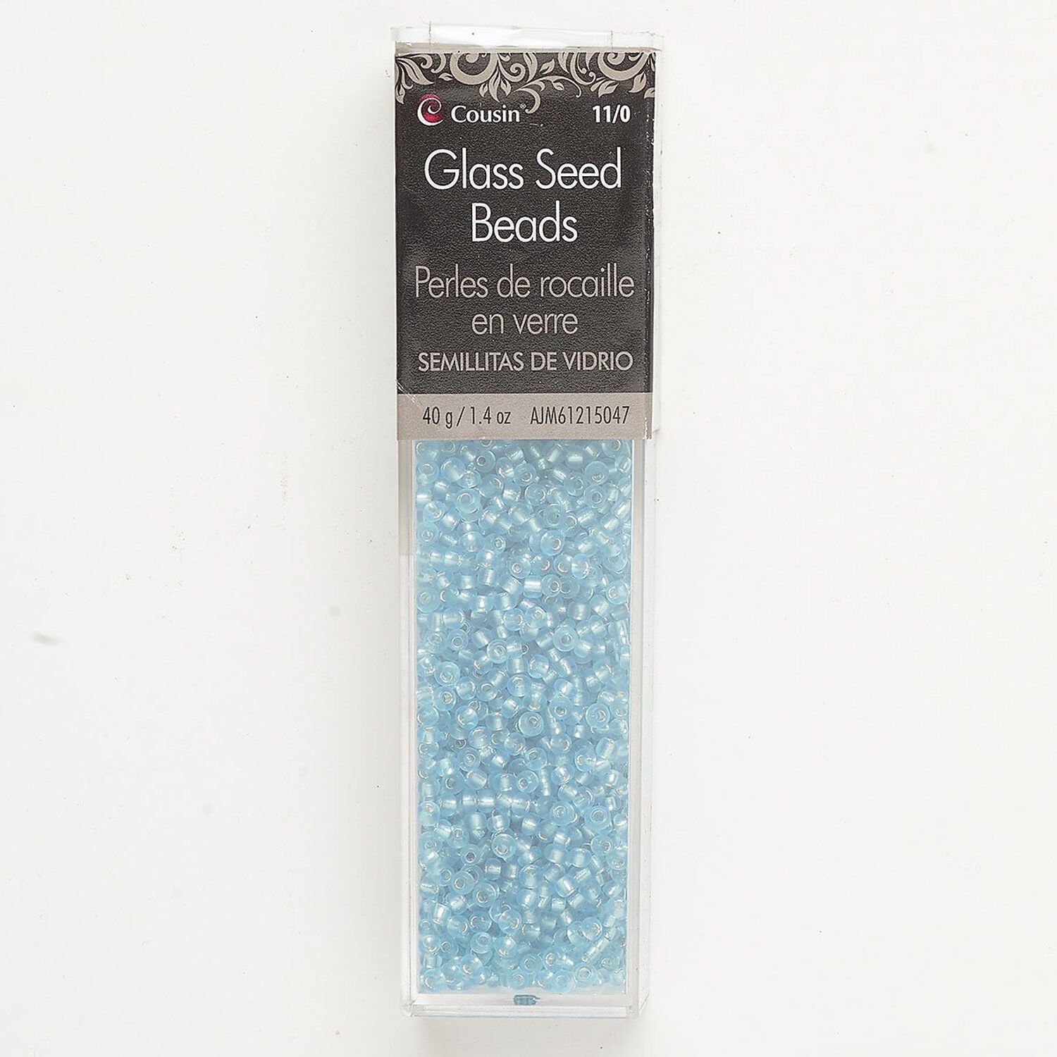 Seed bead, glass, 40g, translucent silver-lined light blue, #11 round.
