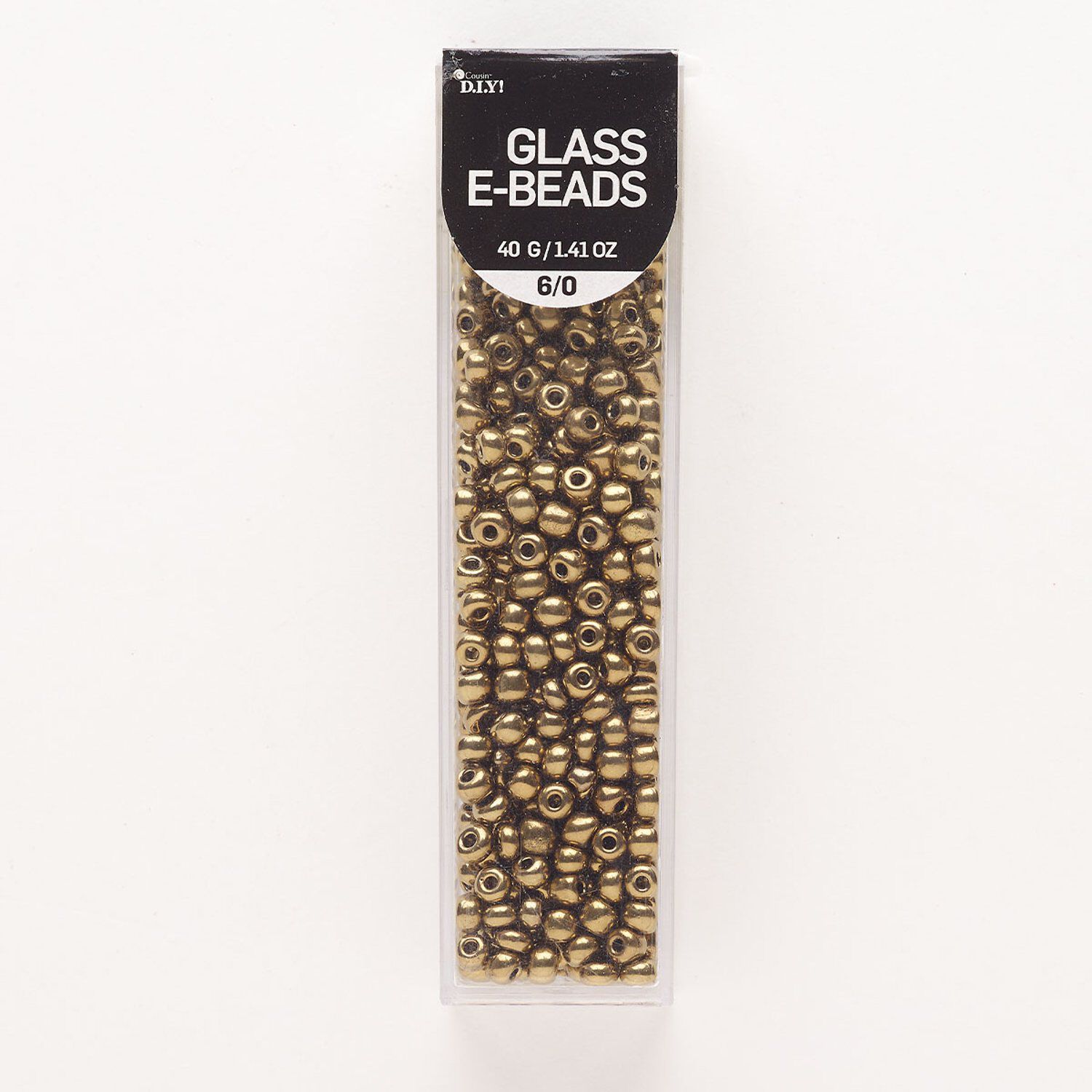 Seed bead, glass, pkg/40g, #6 round, opaque gold.