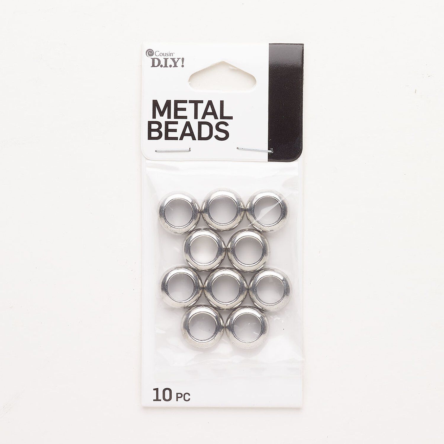 Bead, brass, pkg/10, antique silver finish, 12x5mm large-hole rondelle.
