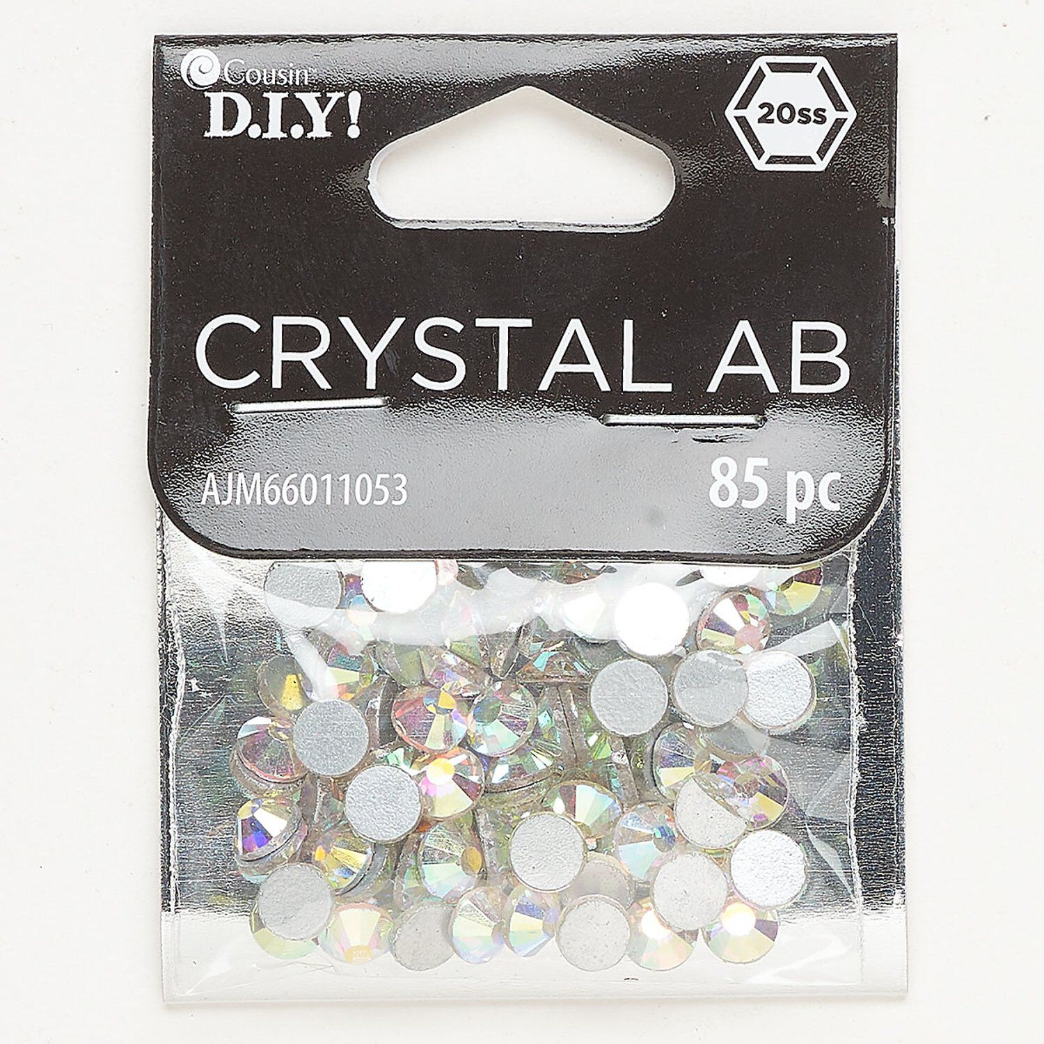Flat back, glass, pkg/85, opaque clear AB, 4.6-4.8mm round, SS20.