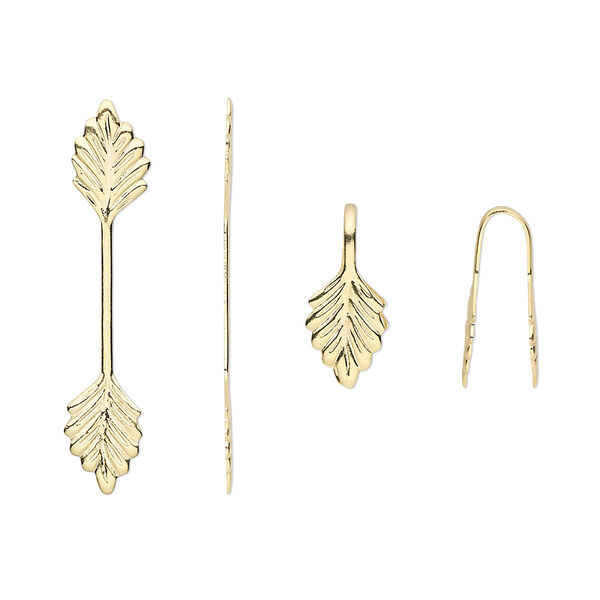 Bail, fold-over, gold-plated brass, 29x6mm double leaf with 14mm grip length. Sold per pkg of 100.