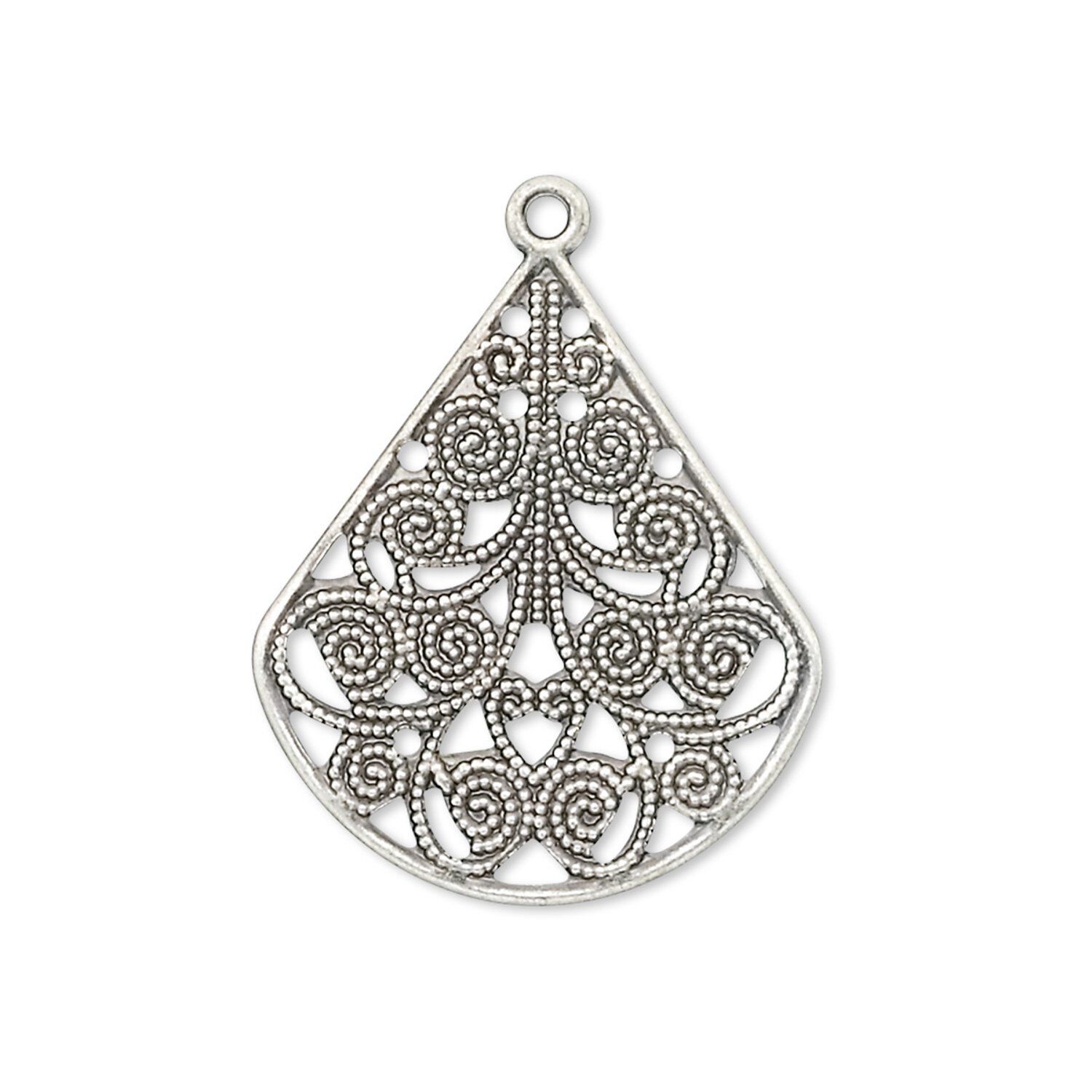 Drop, antique silver-plated steel, 26x23mm filigree teardrop. Sold per pkg of 10.