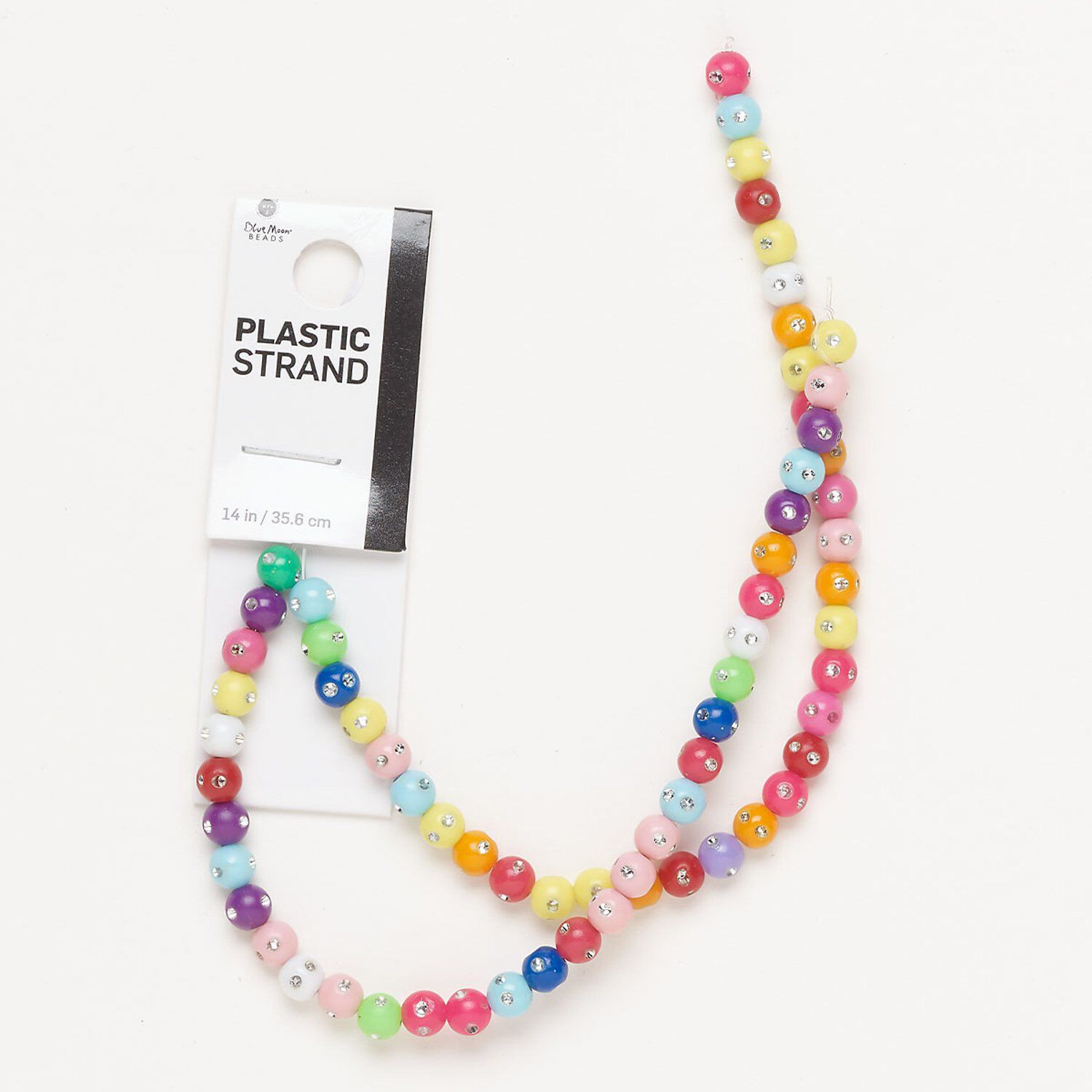 Bead, plastic, mixed colors, 5-6mm round. Sold per 14-inch strand, approximately 65 beads.