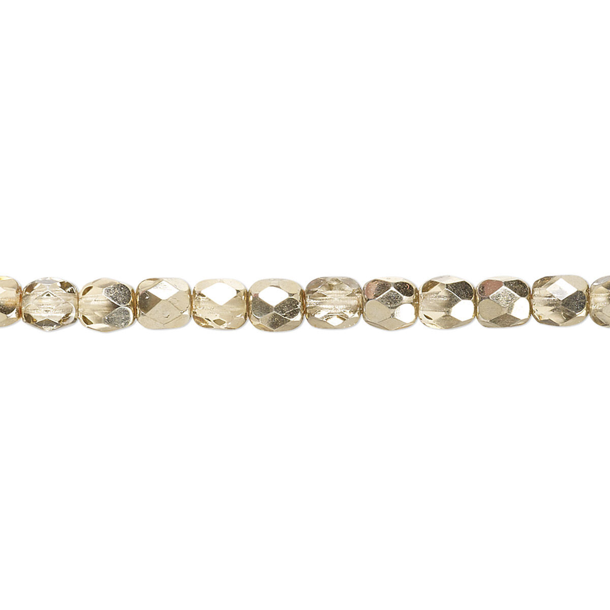 Bead, Czech fire-polished glass, metallic pale gold, 4mm faceted round. Sold per pkg of 1,200 (1 mass).