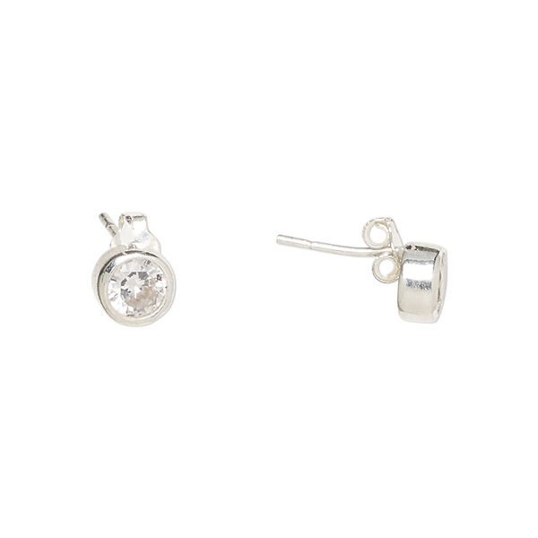 Earstud, Create Compliments®, cubic zirconia and sterling silver, clear, 6.5mm round. Sold per pair.