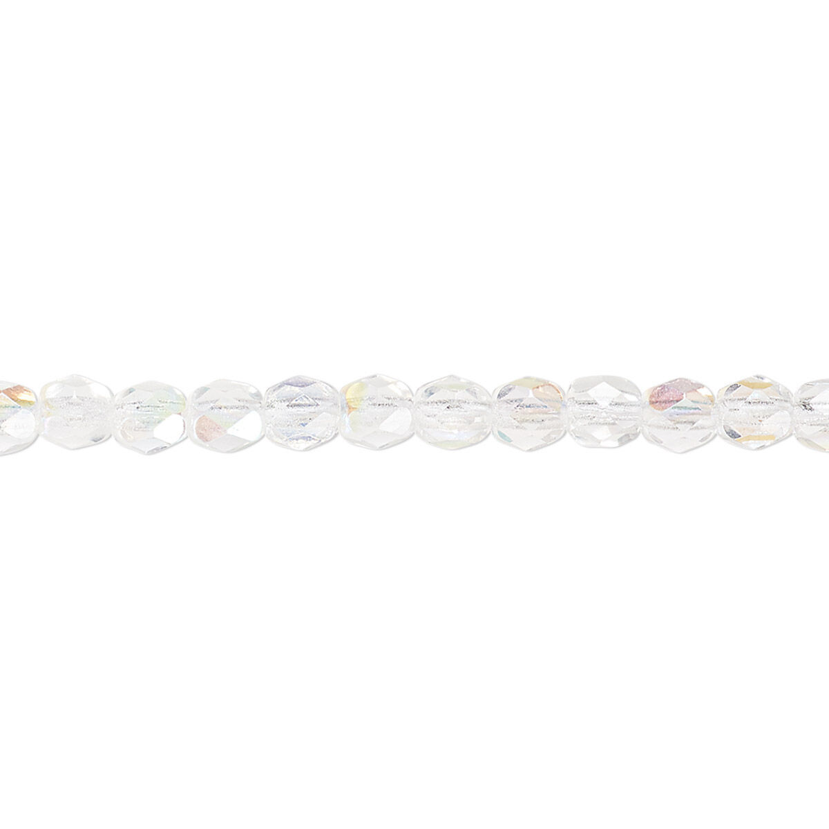 Bead, Czech fire-polished glass, clear AB. 4mm faceted round. Sold per pkg of 1,200 (1 mass).