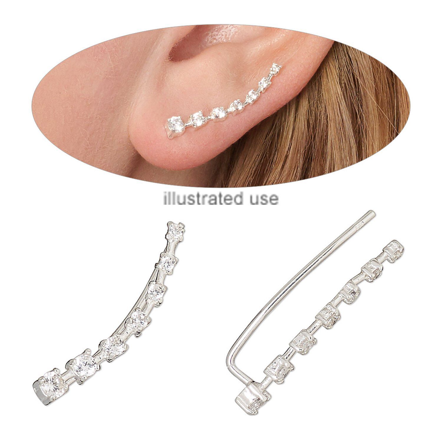 Ear climber, Create Compliments®, cubic zirconia and sterling silver, clear, 27x5.5mm curve, 18 gauge. Sold per pair.