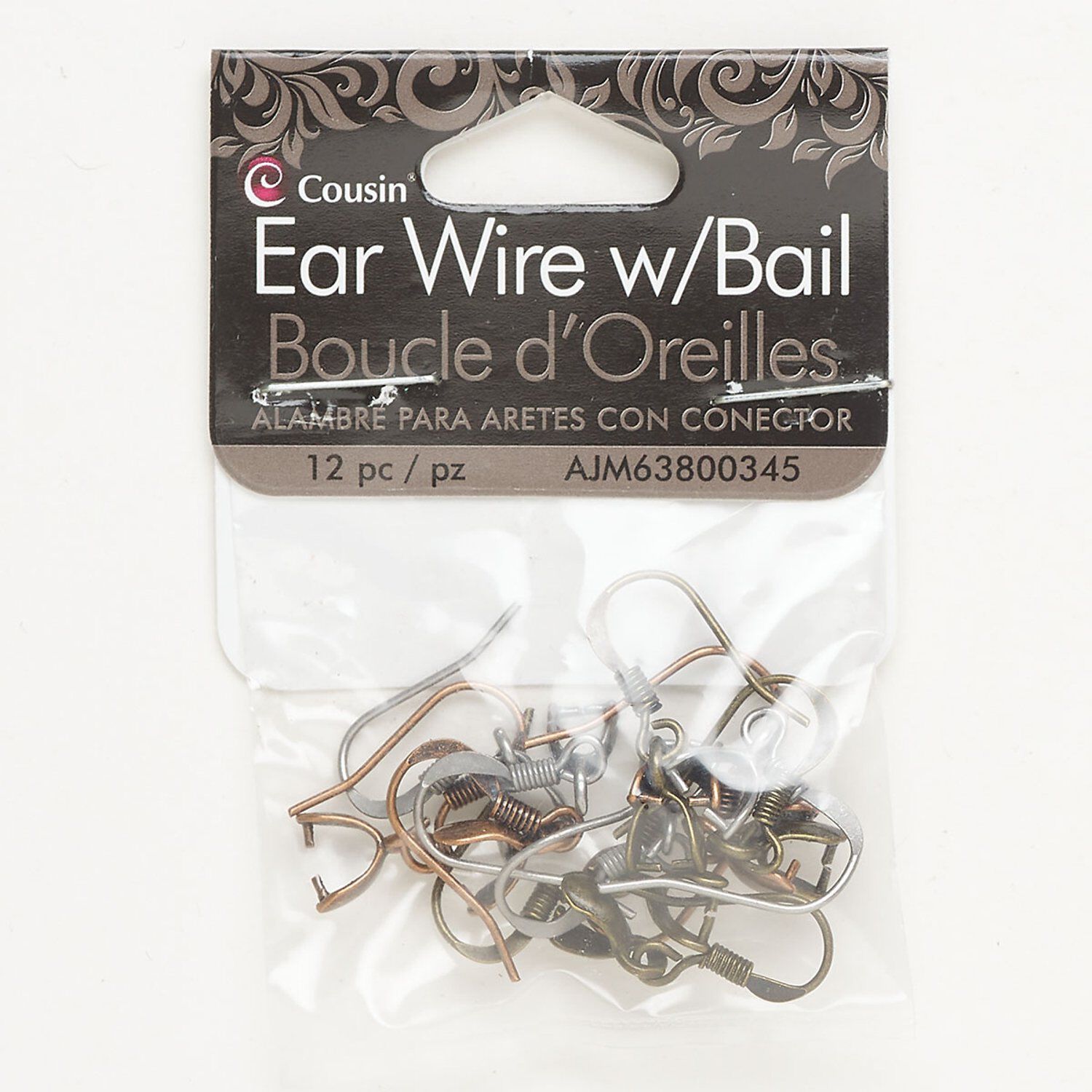 Package contains (2) of each: antique brass finish, antique copper finish and gunmetal finish. All ear wires include bails with a 4mm grip length.