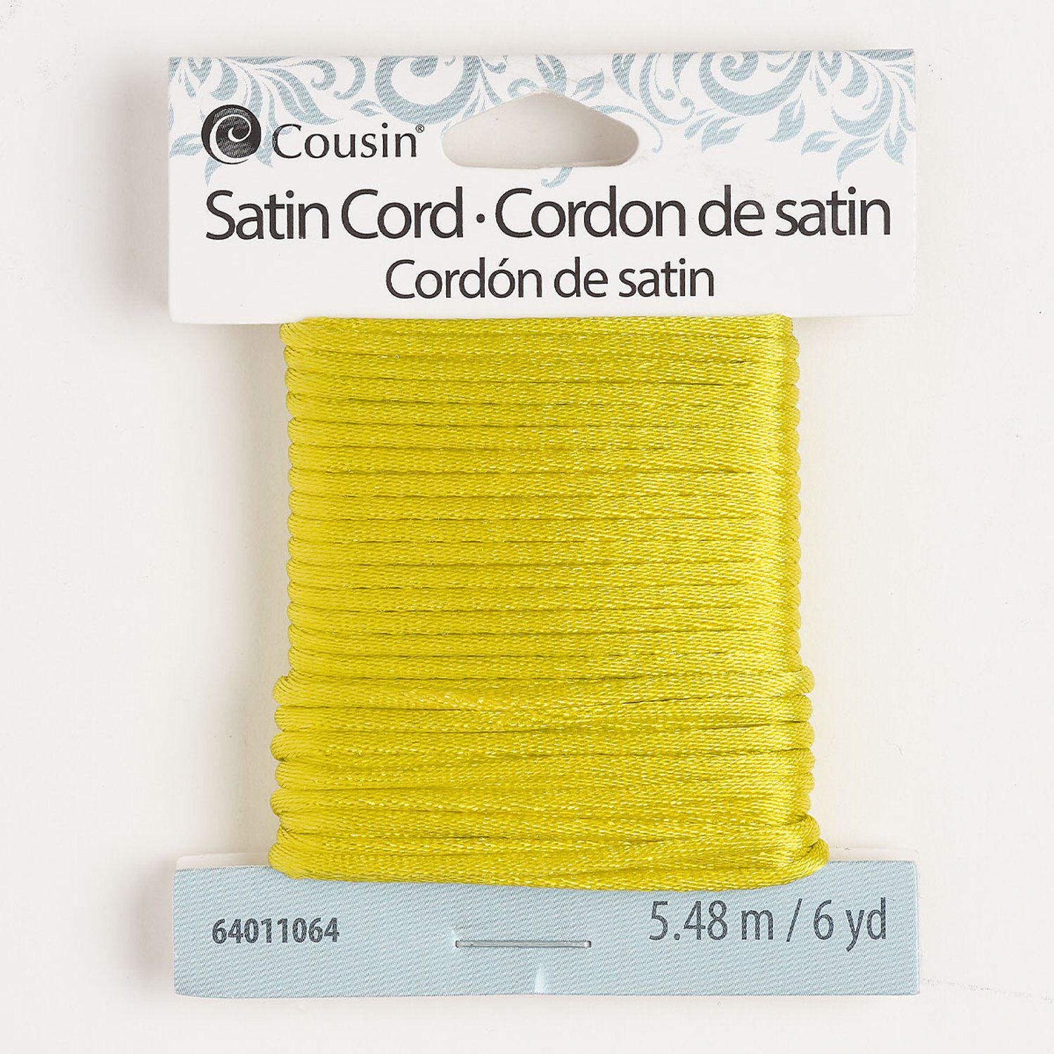 Cord, satin, yellow, 2mm round. Sold per 6 yard section.