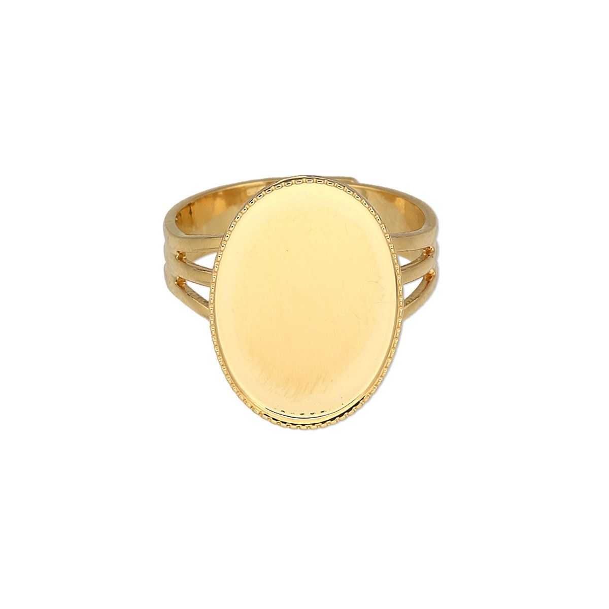Ring, gold-plated brass, 19x14mm with 18x13mm oval setting, adjustable from size 7-10. Sold per pkg of 6.