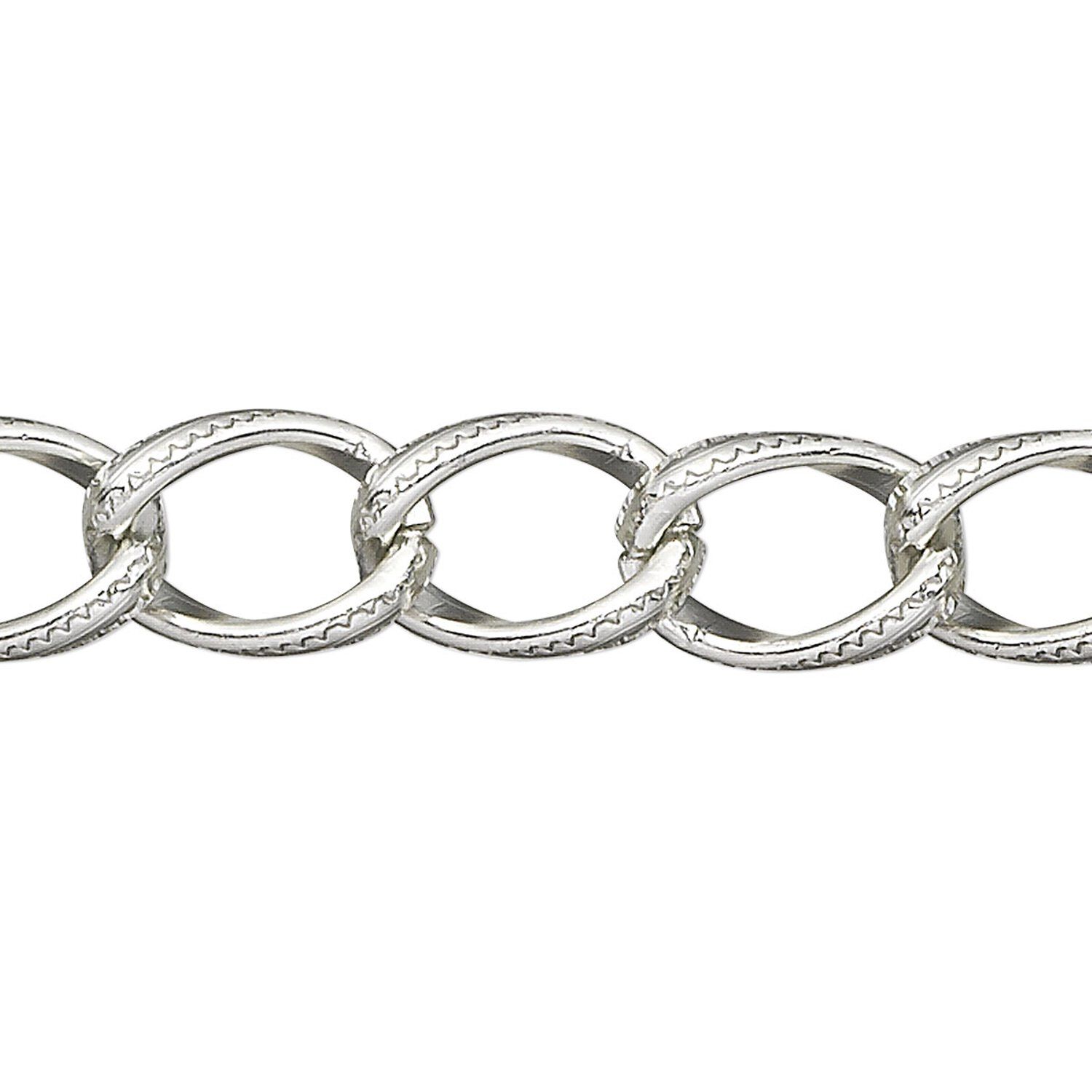 Chain 1pkg1 curb, 8mm textured, aluminum / anodized silver 5 foot unfinished