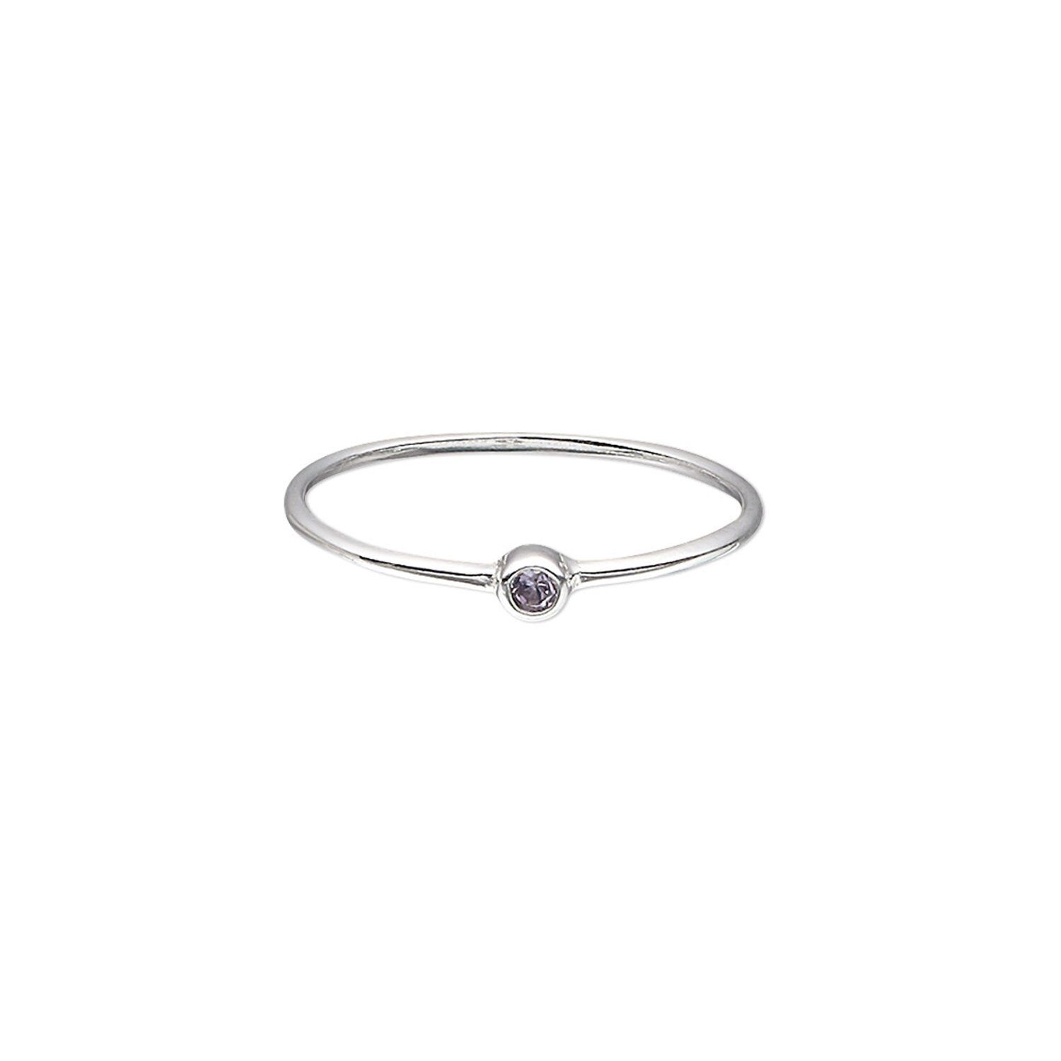 Adorn your (or your customers') fingers with this demure size 7 sterling silver finger ring. Sparkling amethyst purple cubic zirconia is set in beautiful sterling silver, a popular metal in jewelry for its precious metal appeal. Narrow, single-stone bands of this type are popularly stacked by ring-wearing fashionistas.
