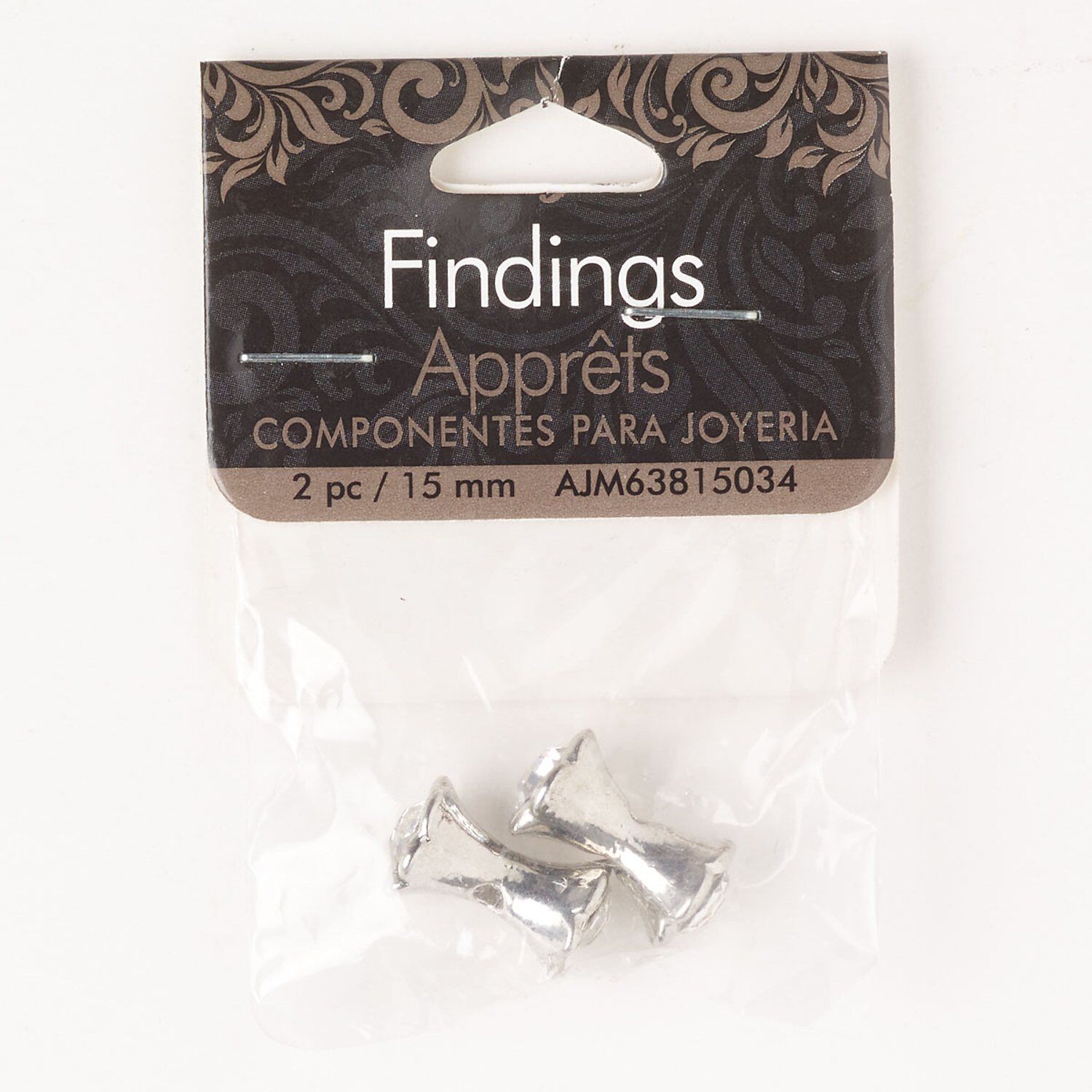 Bead, brass and acrylic, pkg/2, silver finish and clear, 16x8mm peanut.