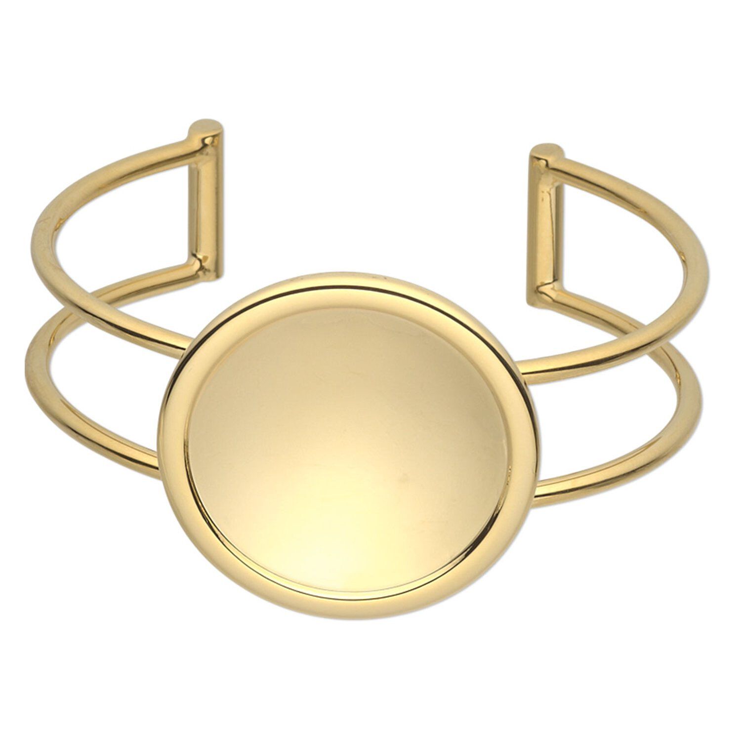 Bracelet, Almost Instant Jewelry®, cuff, gold-plated brass and "pewter" (zinc-based alloy), 65x36mm with 30mm round setting, adjustable. Sold individually.