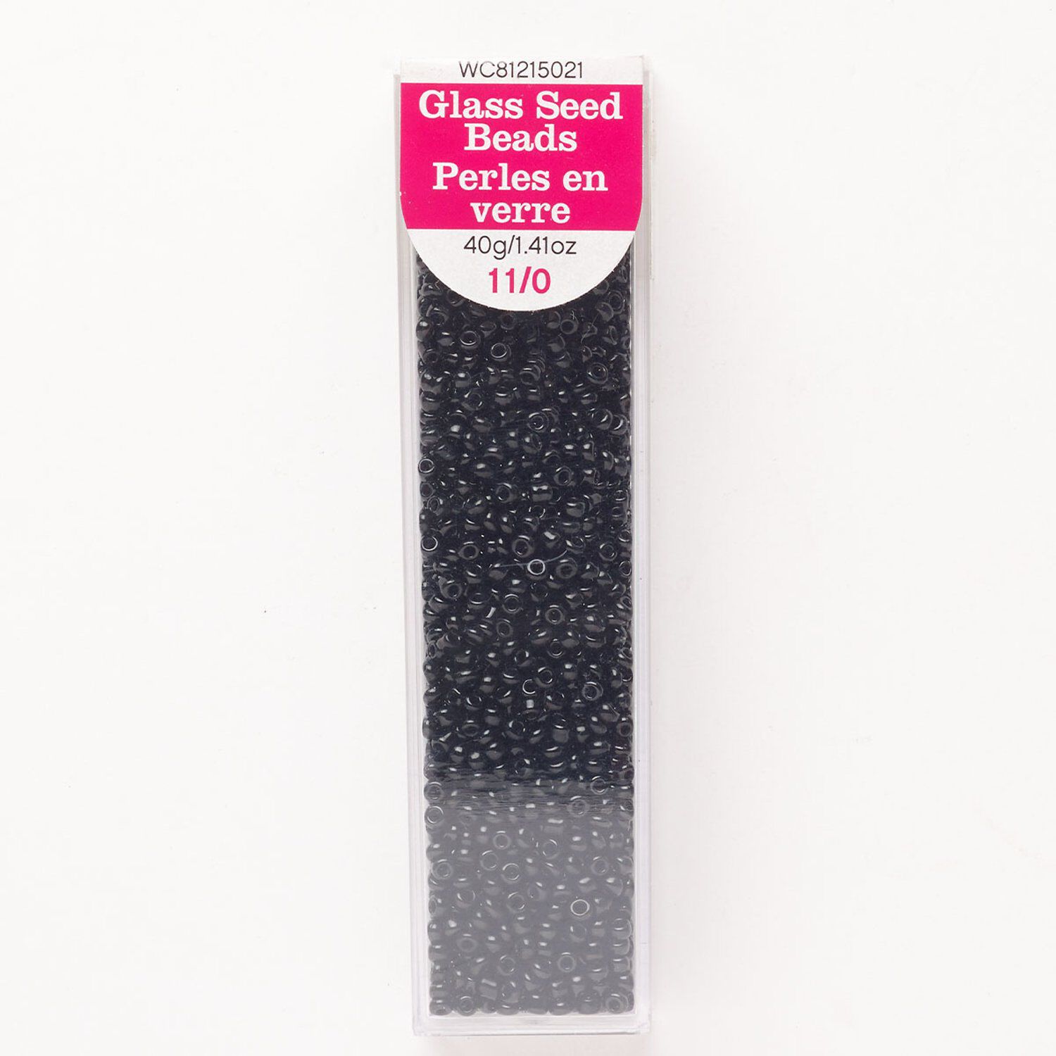 Seed bead, glass, pkg/40g, opaque black, #11 round.