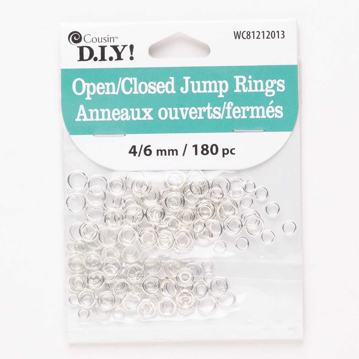 Jump ring mix, steel, pkg/180, silver finish, 4mm and 6mm closed and open round, 17- and 21-gauge, 2.5-4.7mm inside diameter.