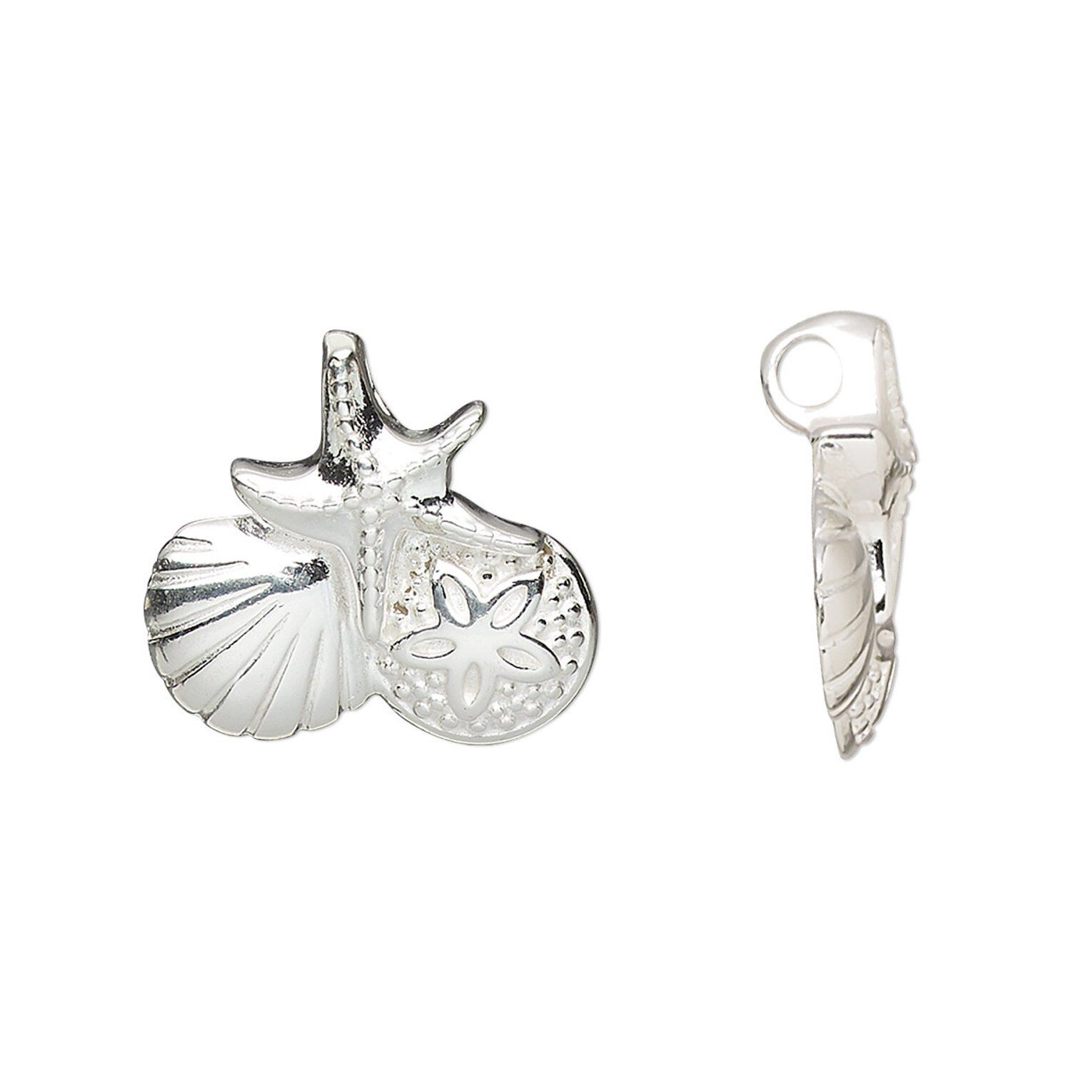 This beachy pendant has a hidden bail on the back for making quick, beautiful jewelry--especially with Gossamer™ chain or other "barely there" chain styles. The single-sided design features a starfish, clam shell and sand dollar rendered in gleaming sterling silver. Pendant has an anti-tarnish coating.
