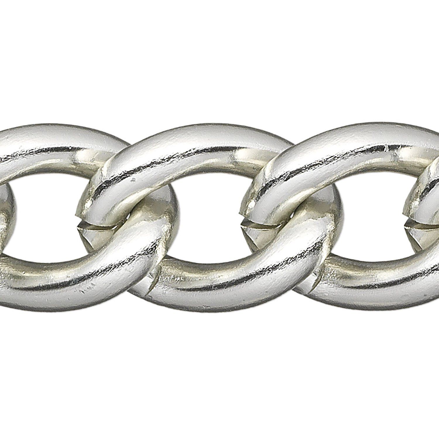 Chain 1pkg1 curb, 16mm, aluminum / anodized silver 5 foot unfinished