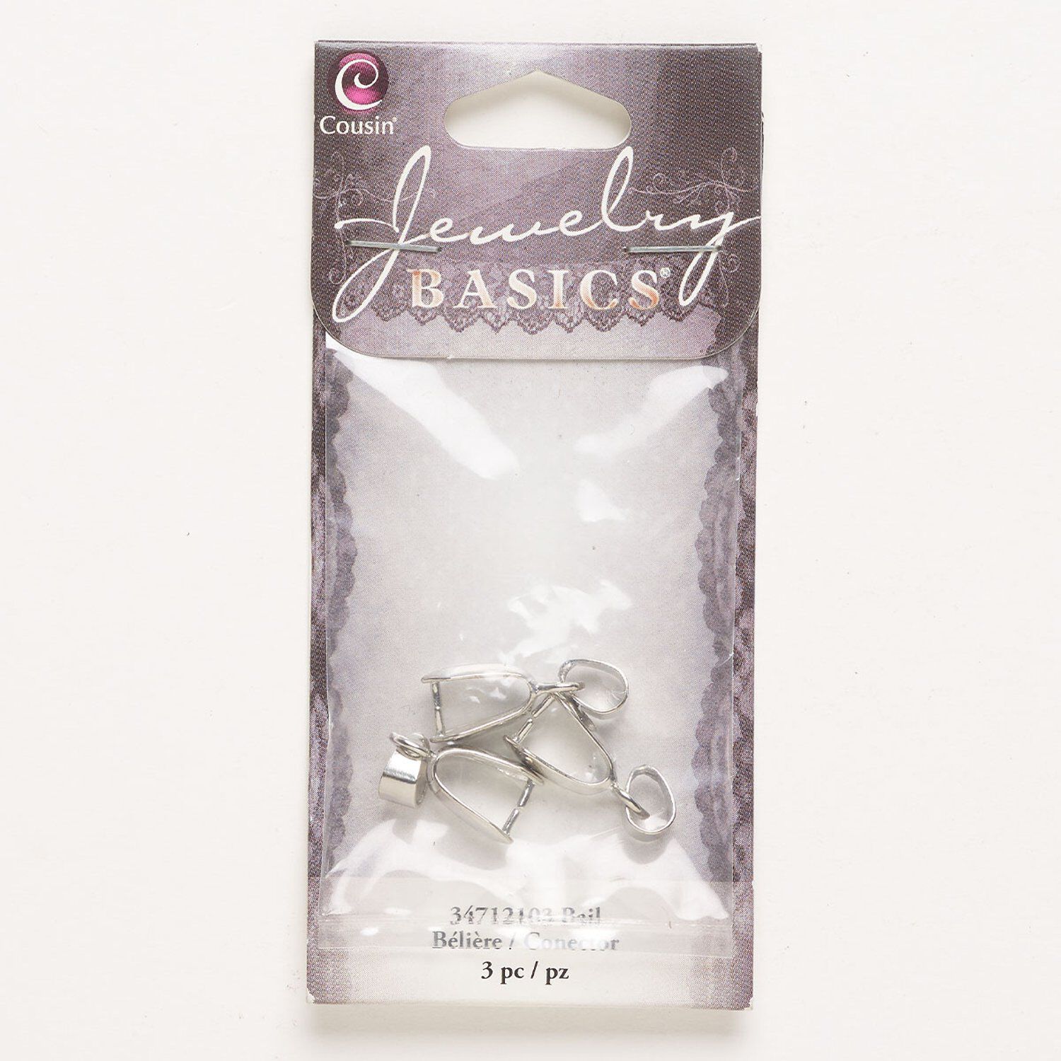 Bail, ice-pick, brass, pkg/3, silver finish, 11x5mm teardrop with 8mm grip length.