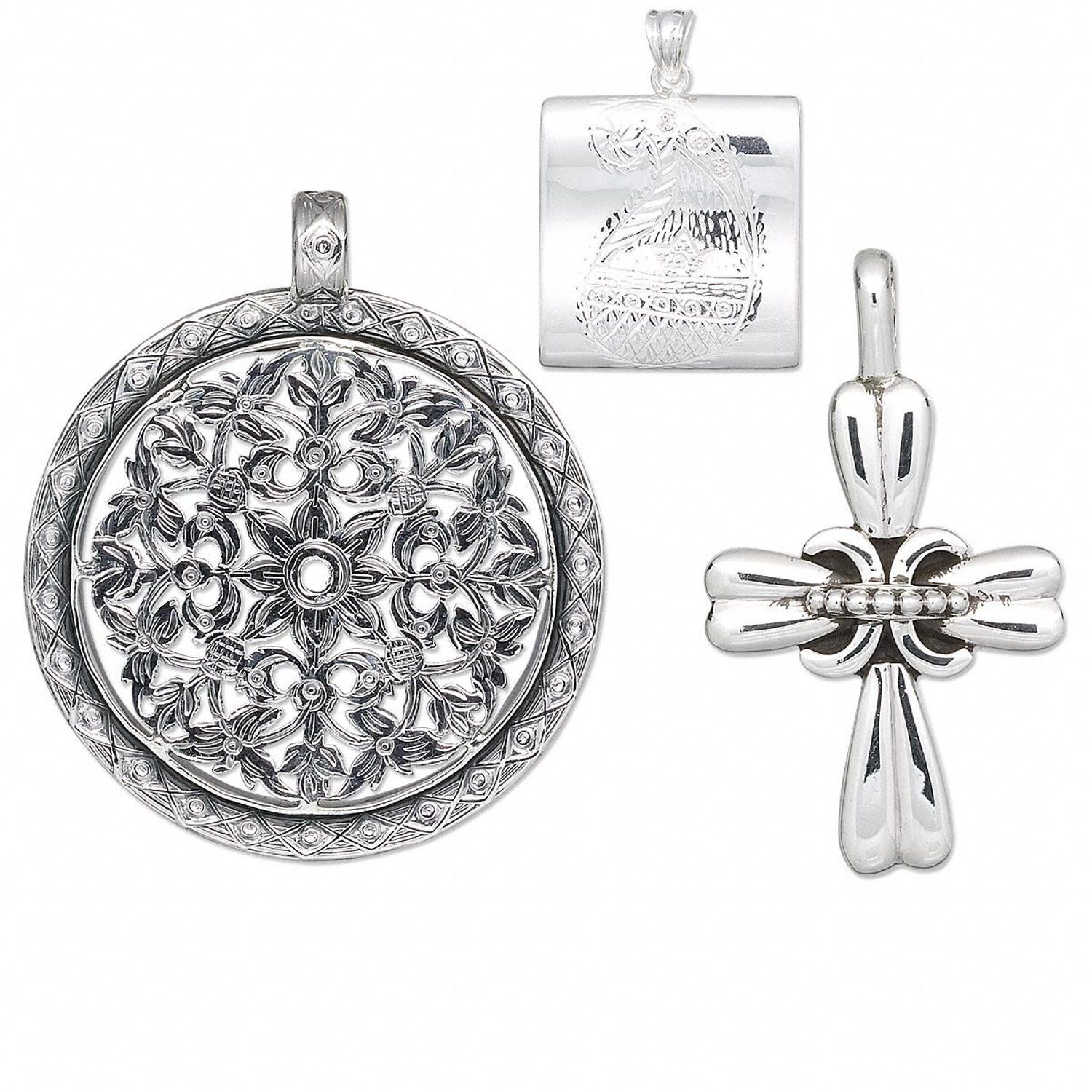 Pendant mix, sterling silver, 30-87mm mixed shape. Sold per pkg of 3.