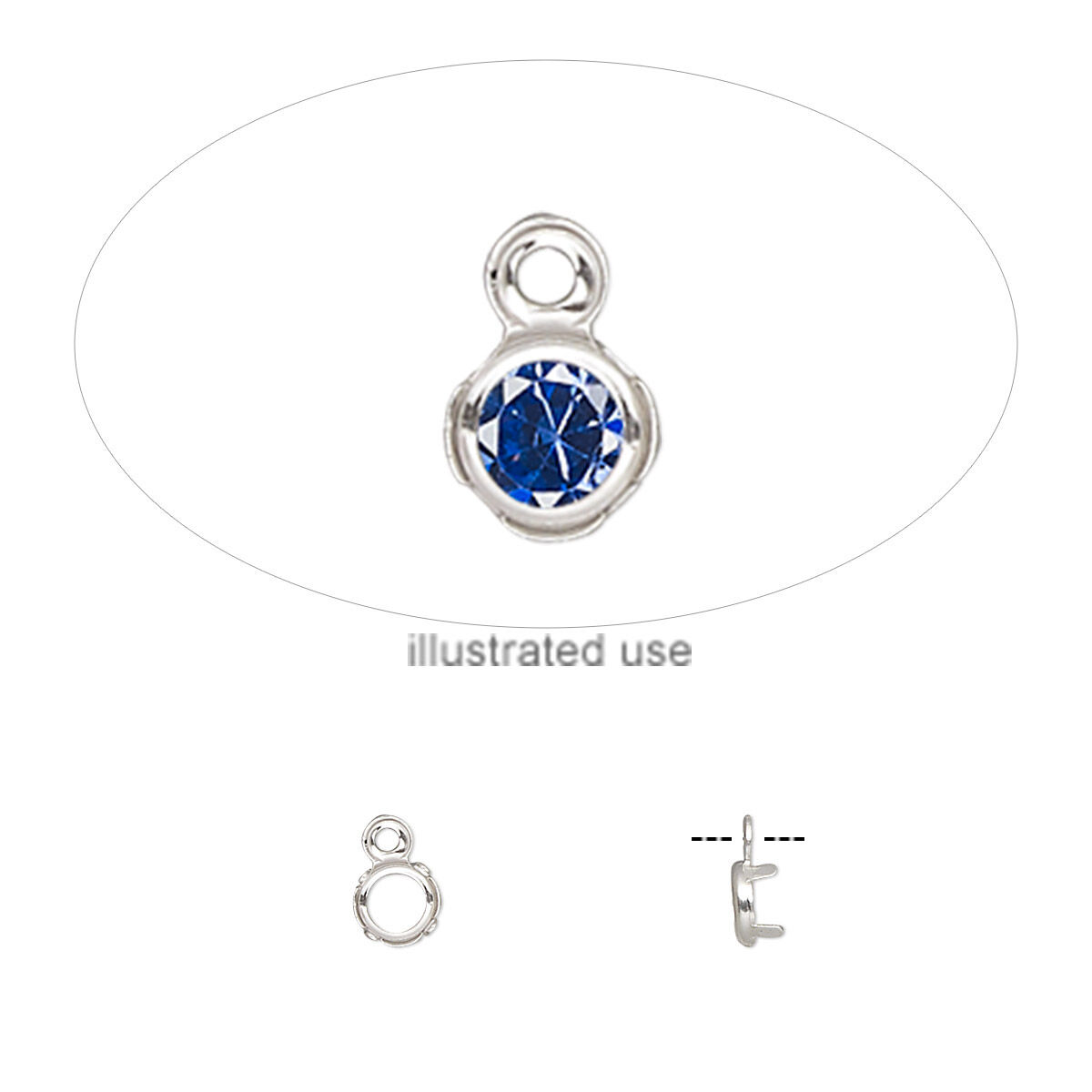 Drop, sterling silver, 4mm round with 3mm 4-prong low wall bezel setting. Sold per pkg of 2.