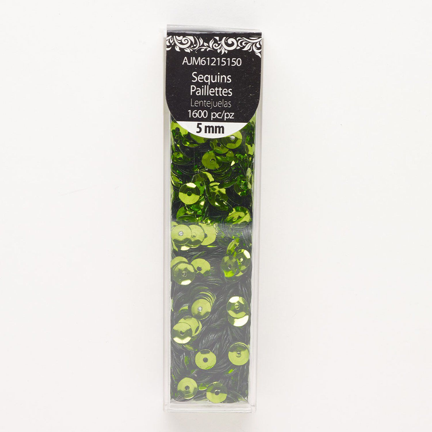 Sequin, plastic, green, 5mm round. Sold per pkg of 1,600.