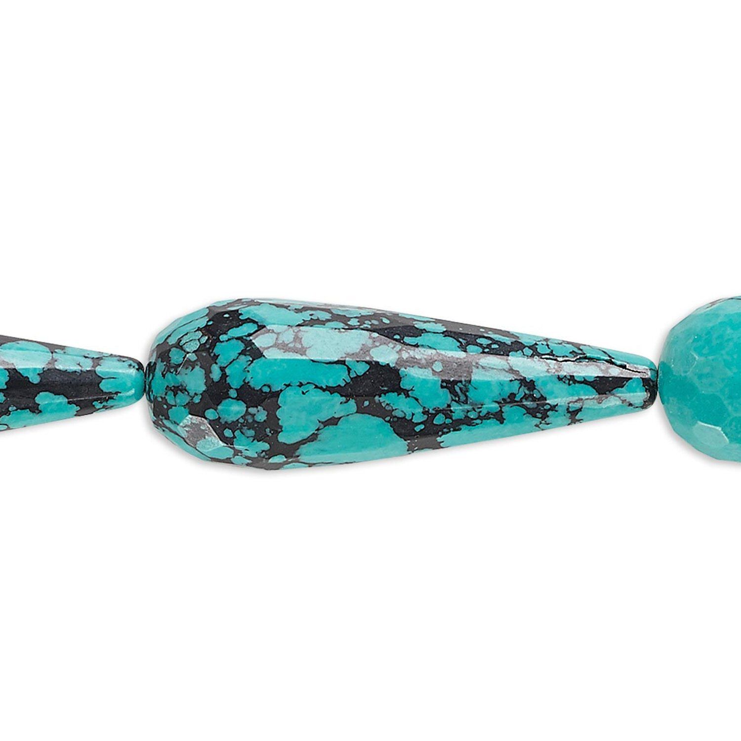 Bead, "turquoise" (resin) (imitation), blue and black, 30x10mm faceted teardrop with matrix. Sold per 8-inch strand, approximately 7 beads.