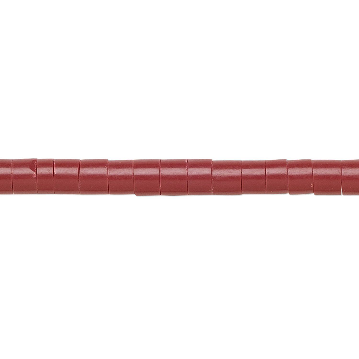 Bead, "coral" (resin) (imitation), red, 4-5mm heishi. Sold per 15-1/2" to 16" strand.
