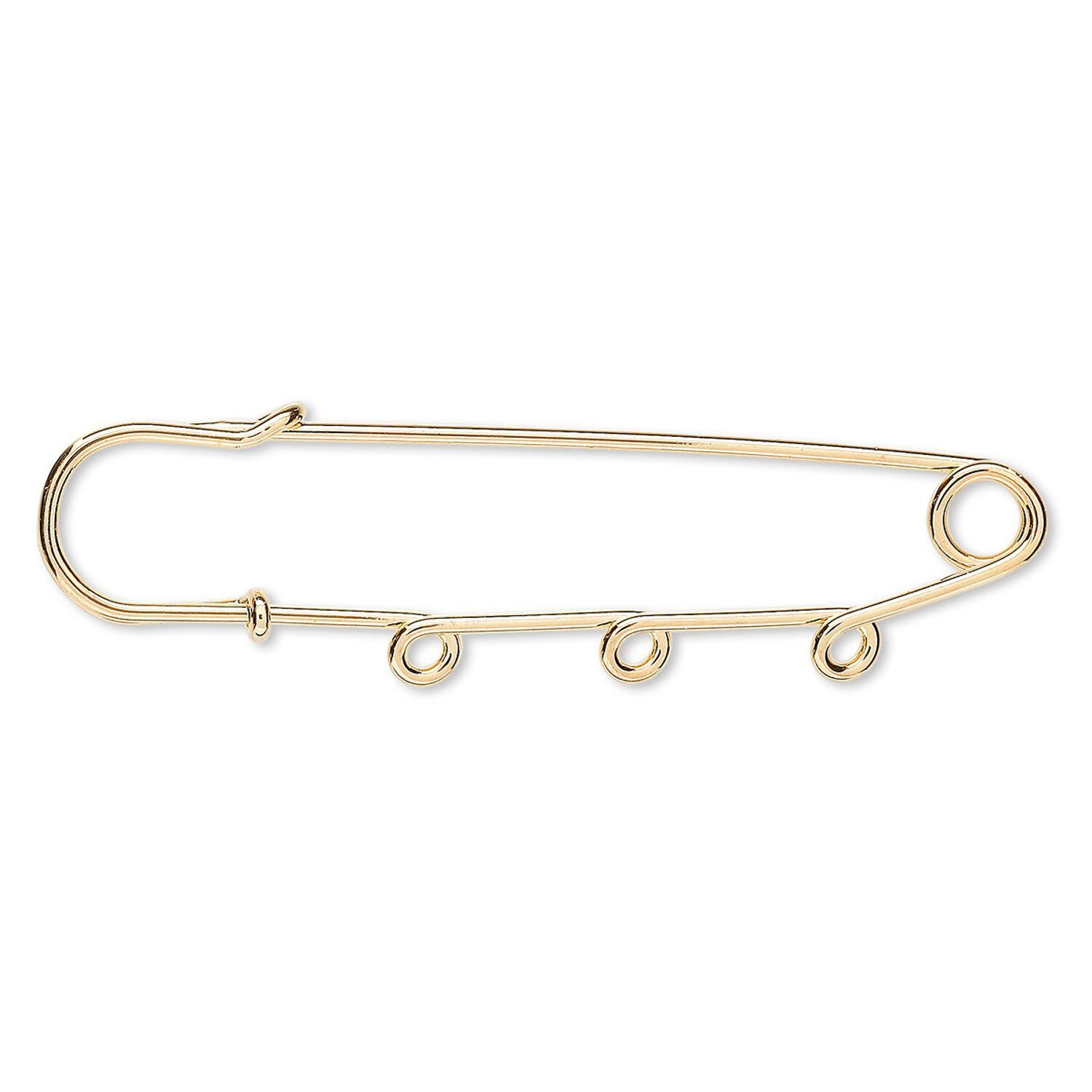 Kilt pin, gold-plated steel, 3 inches with 3 loops. Sold per pkg of 10.