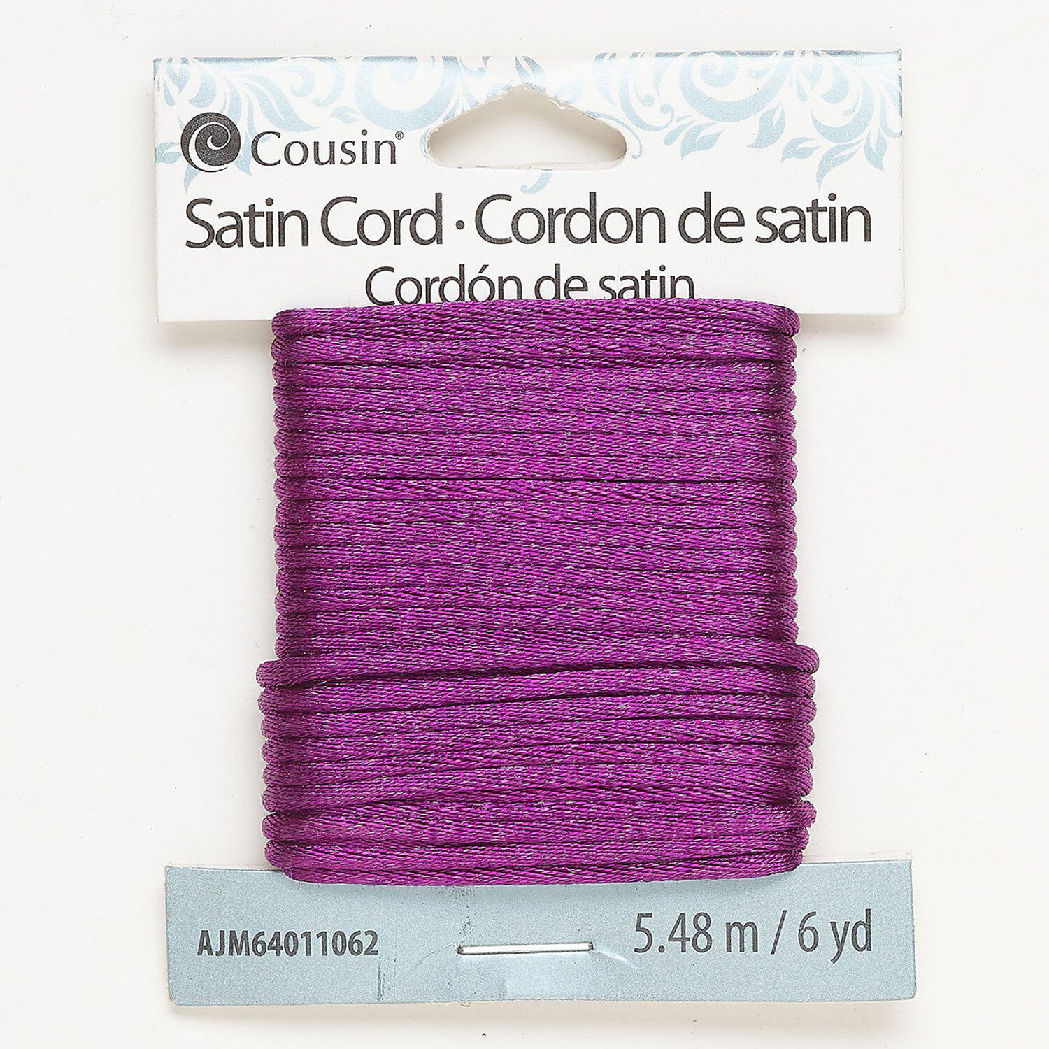 Cord, satin, pkg/6 yards, bright purple, 2mm round.
