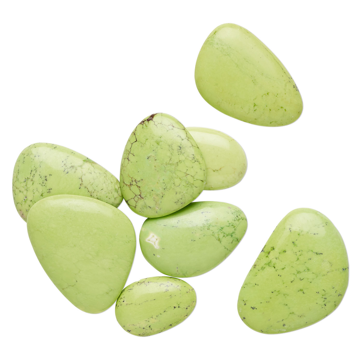 This magnesite has been stabilized and dyed a lively apple green color. This serves to improve its hardness and durability, as well as help prevent the absorption of body oils and deterioration from chemicals. All package weights are approximate.