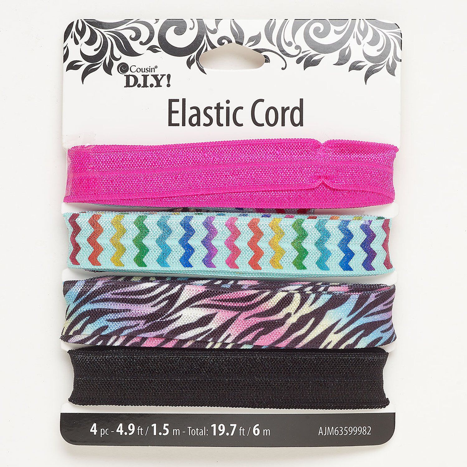 Ribbon, elastic, pkg/(4)1.5m, mixed colors, 15mm flat.