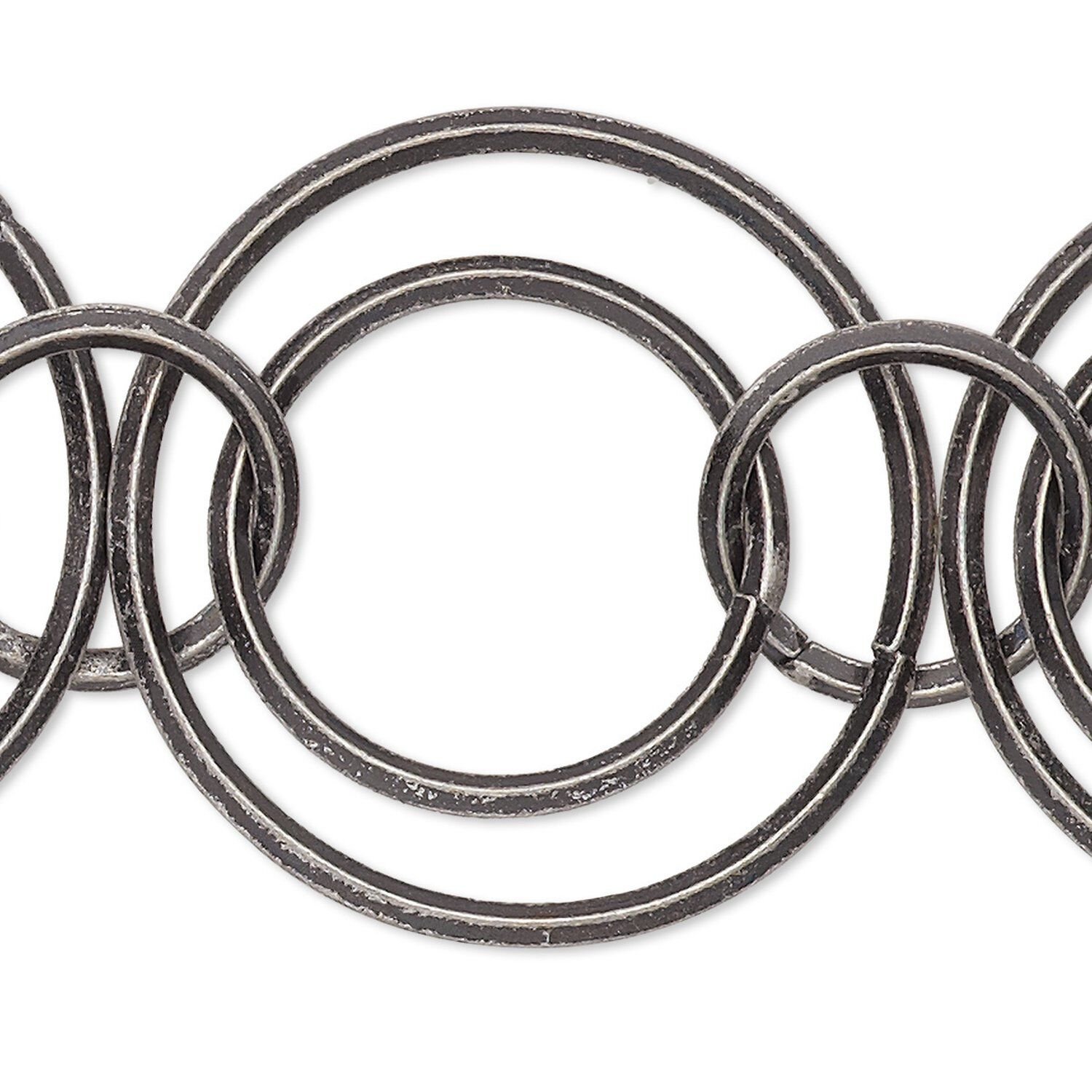 Chain, antique silver-plated brass, 11mm/16mm/23mm interlocking rounds. Sold per pkg of 5 feet.