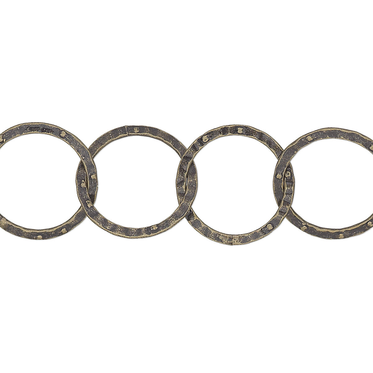 Antique gold-plated brass chain is designed with hammered round cable. Chain is machine-made for solid, consistent links.