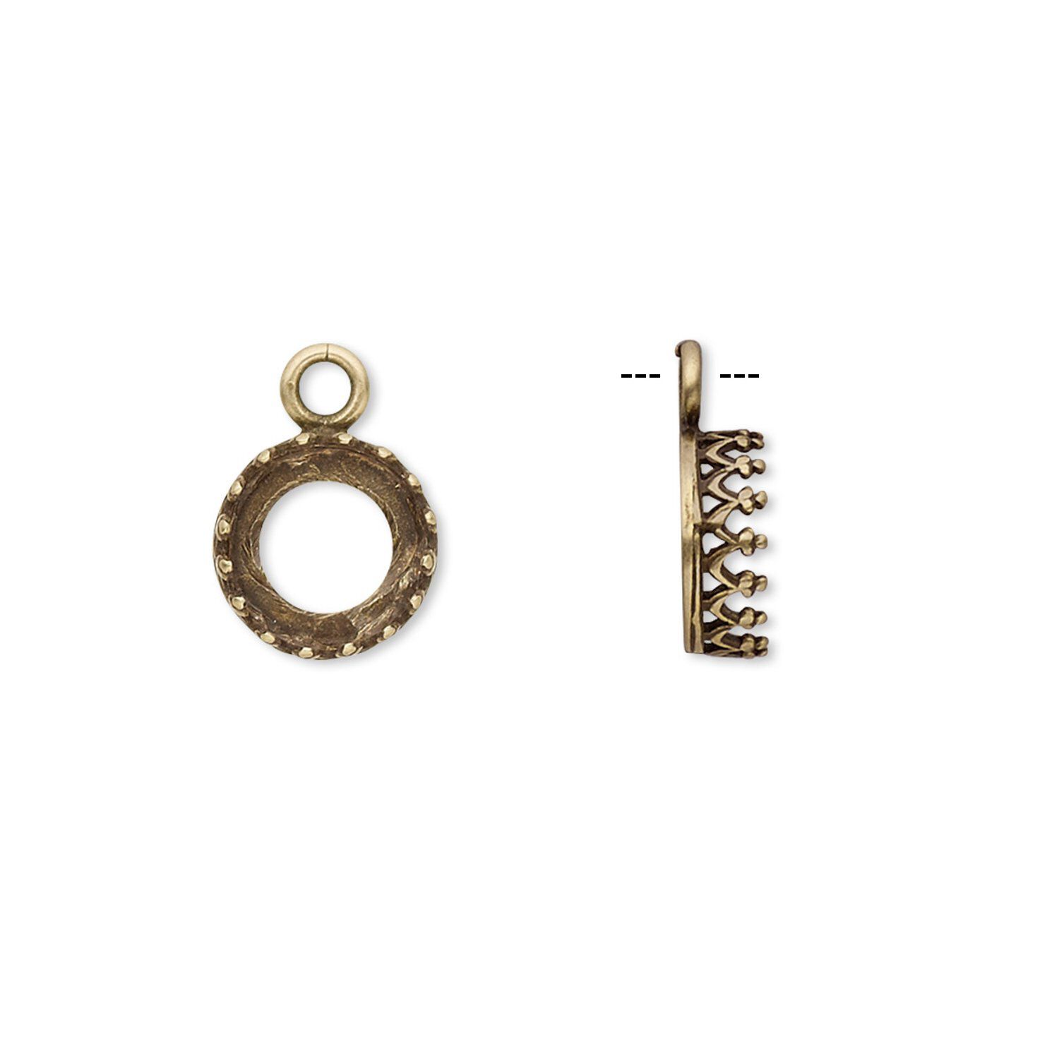 Drop, JBB Findings, antiqued brass, 9mm round with decorative trim, 8mm round bezel setting. Sold per pkg of 2.