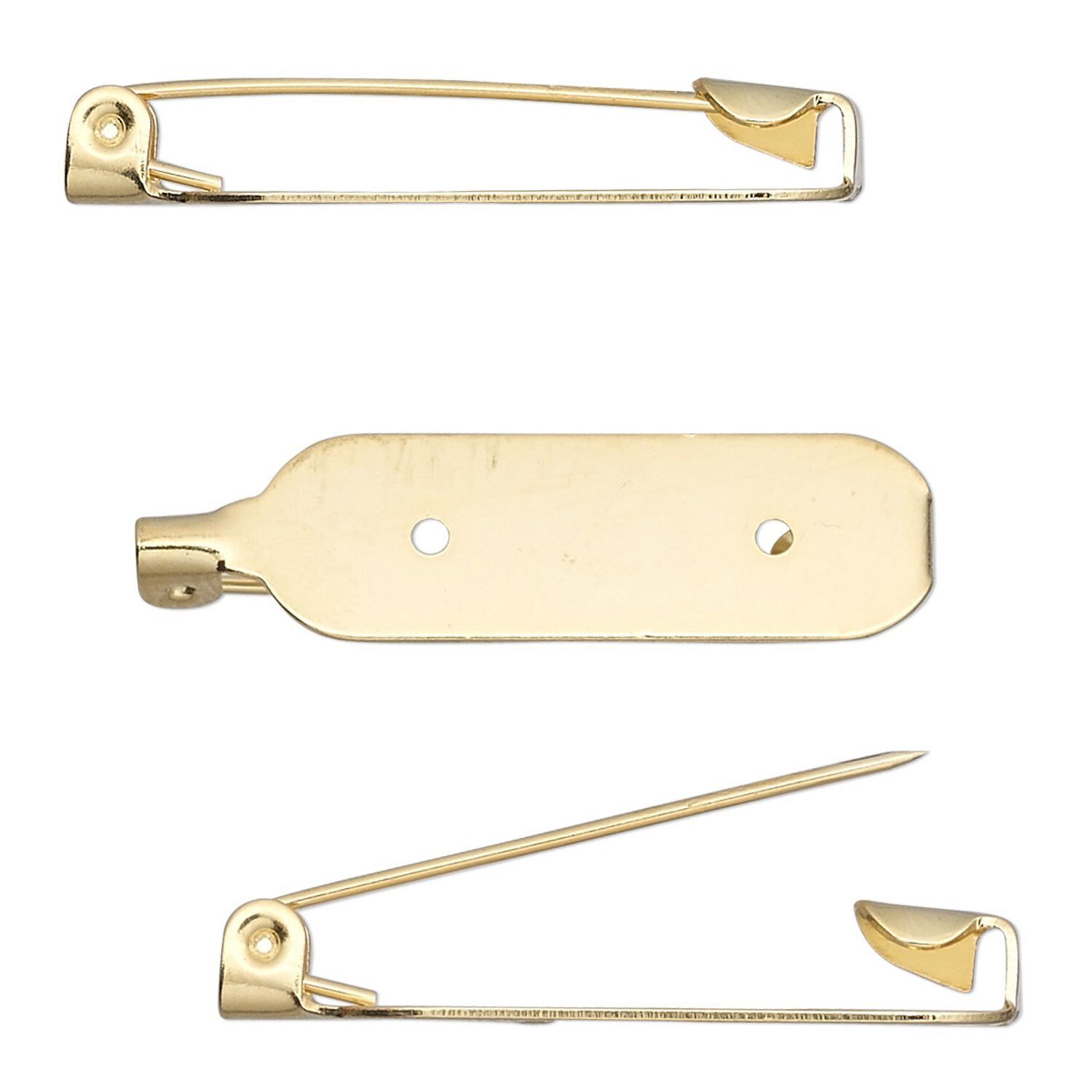 Pin back, gold-plated steel, 1-1/4 inch oval. Sold per pkg of 100.